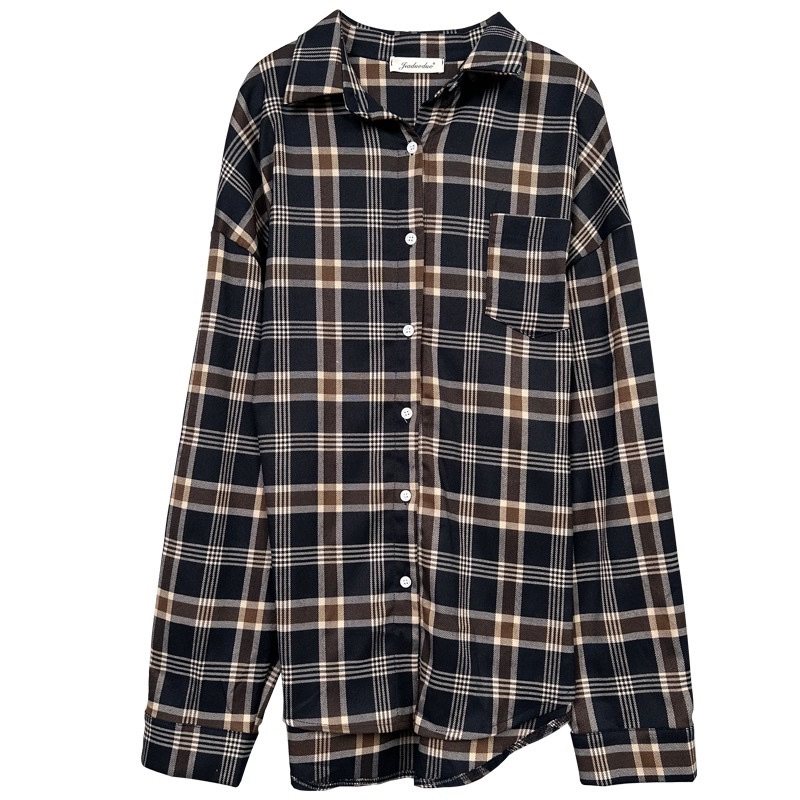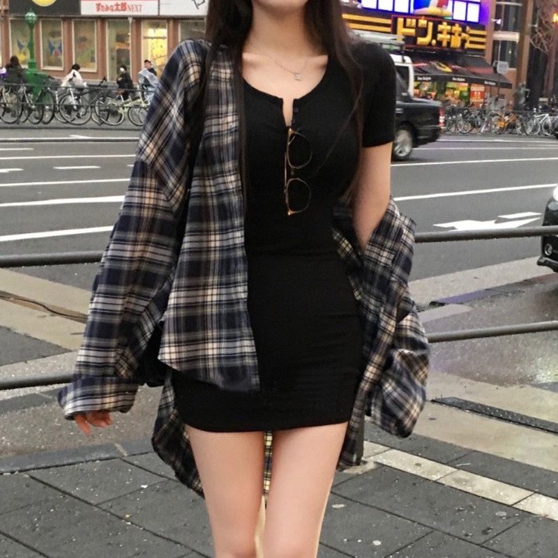 韩国东大门新款自留款实用外搭性感慵懒风宽松防晒格子衬衫女上衣