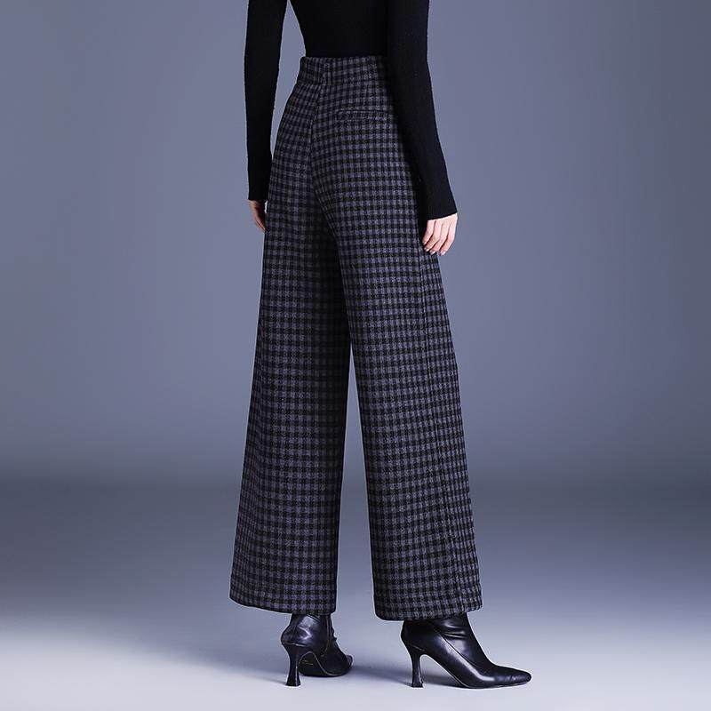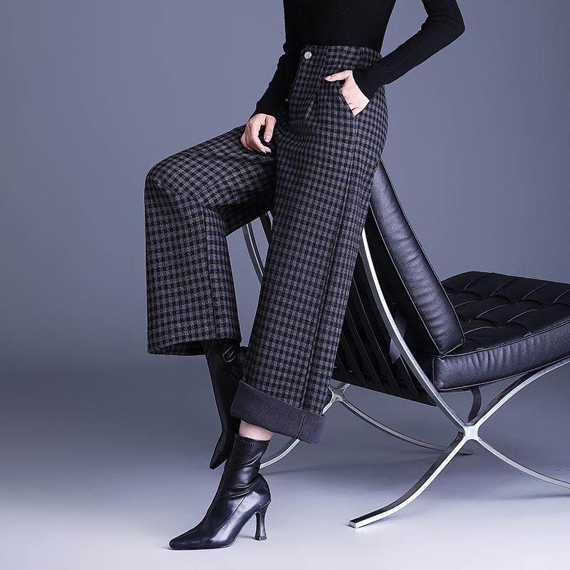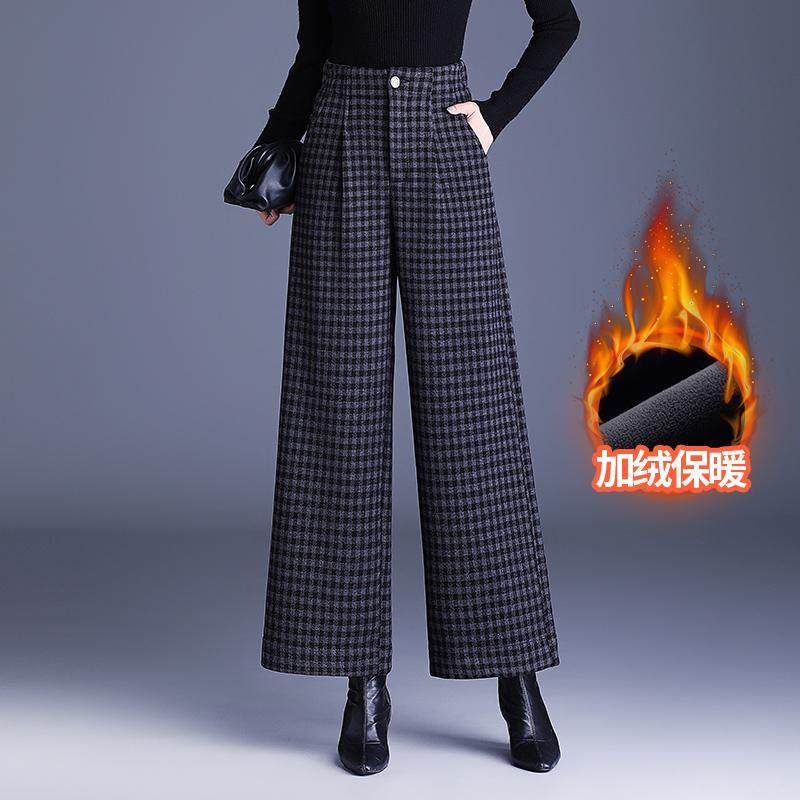 首页> 女装> 复古加绒格子阔腿裤女2025新款秋冬款高腰垂坠感显瘦九分休闲裤子
