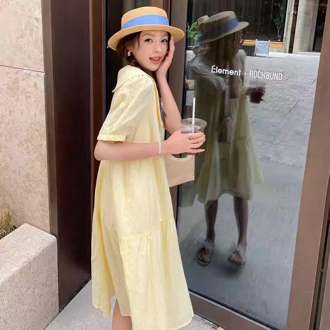 首页> 女装> 甜美温柔风复古黄色连衣裙女娃娃领小清新茶歇法式气质初恋系长裙