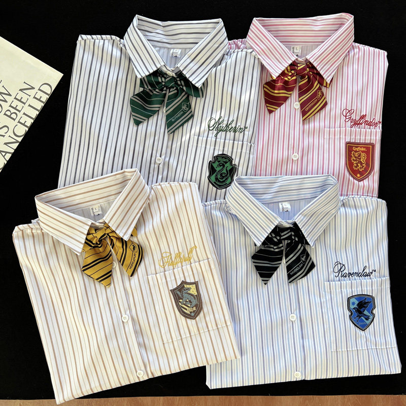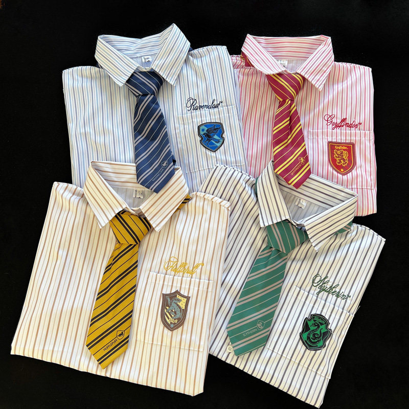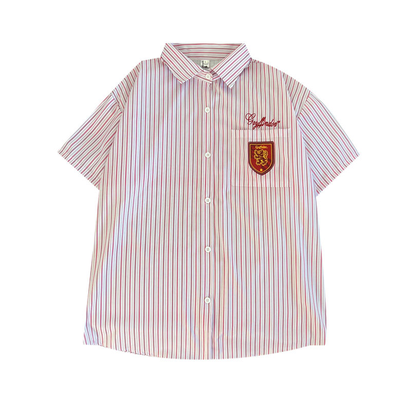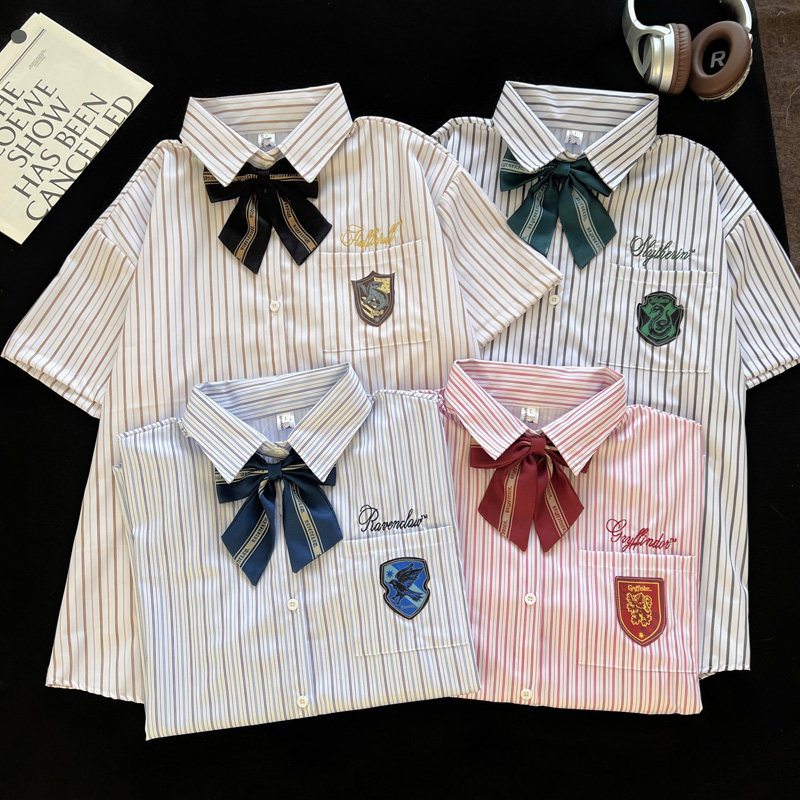 哈利波特联名款学院风条纹短袖衬衫男女夏季新款宽松休闲百搭衬衣