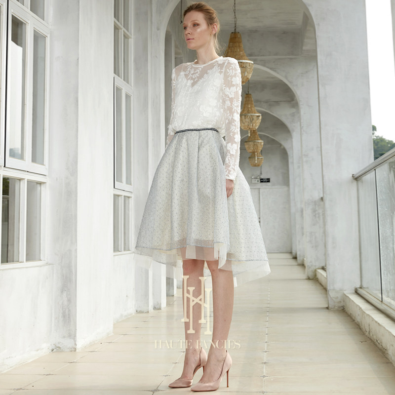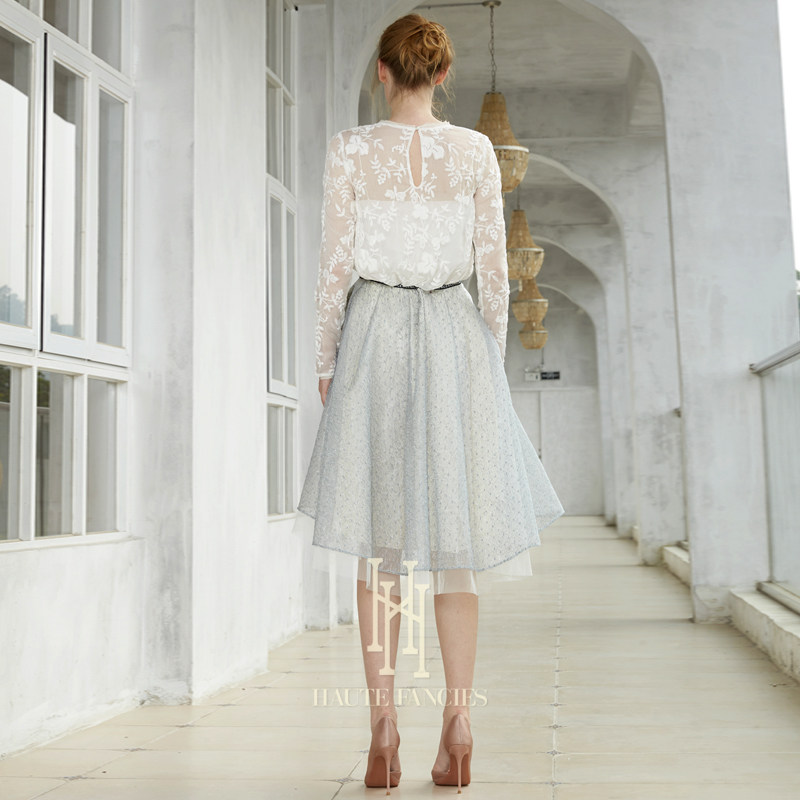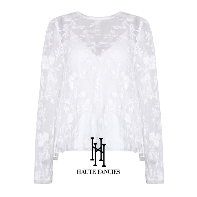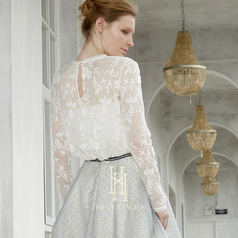 花朵蕾丝 HAUTE FANCIES后构想 | 牡丹白法式蕾丝轻薄圆领上衣秋