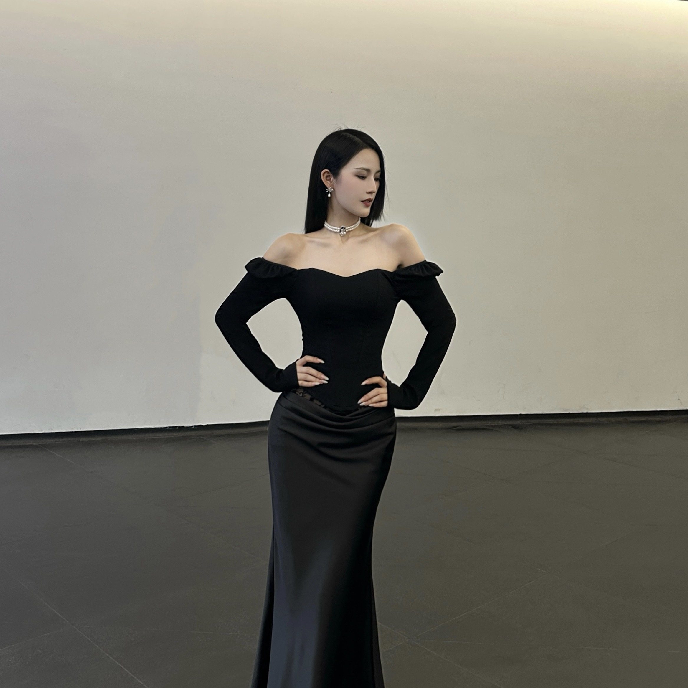 BETTER ME 长袖性感立体鱼骨束身抹胸修身背心显瘦内搭露肩上衣