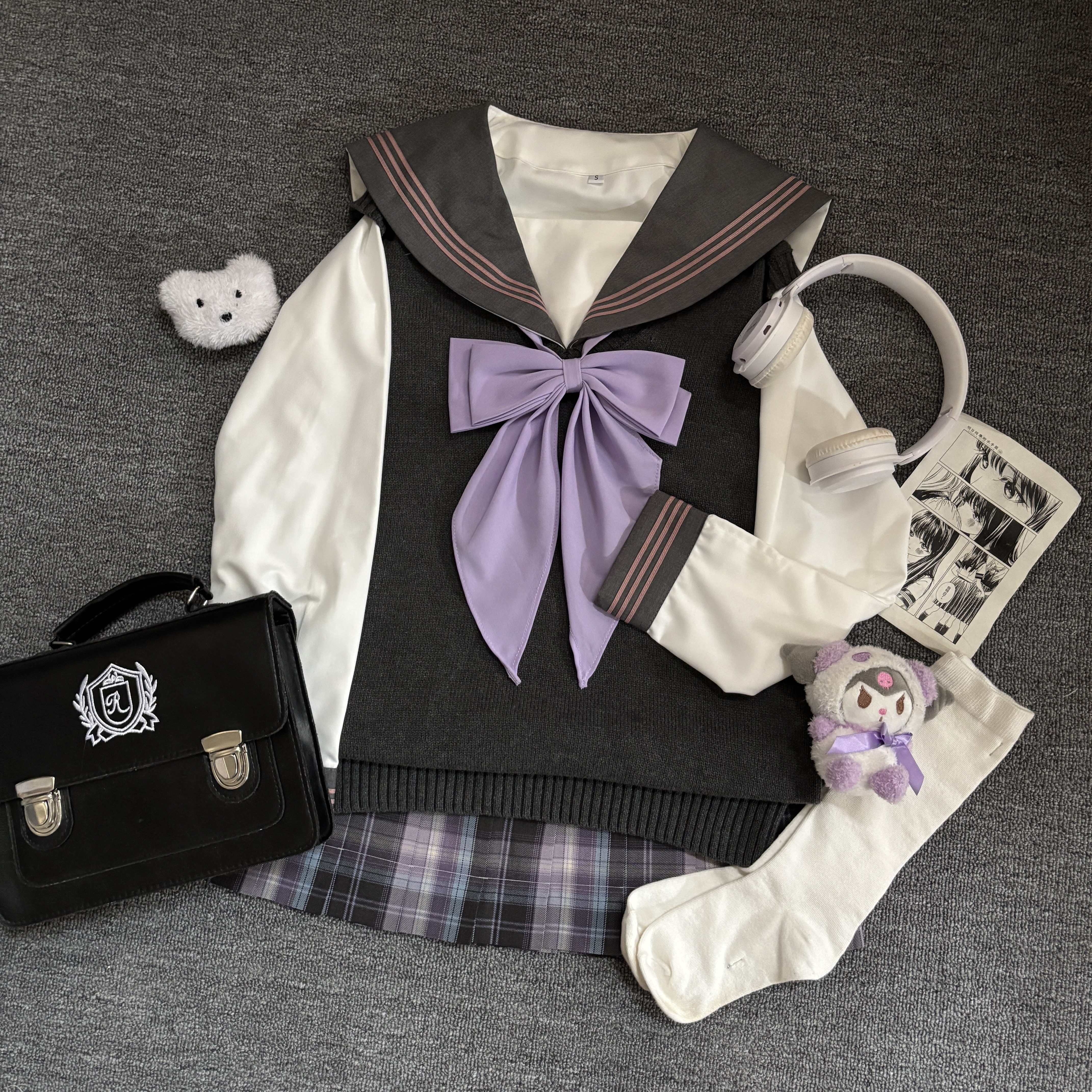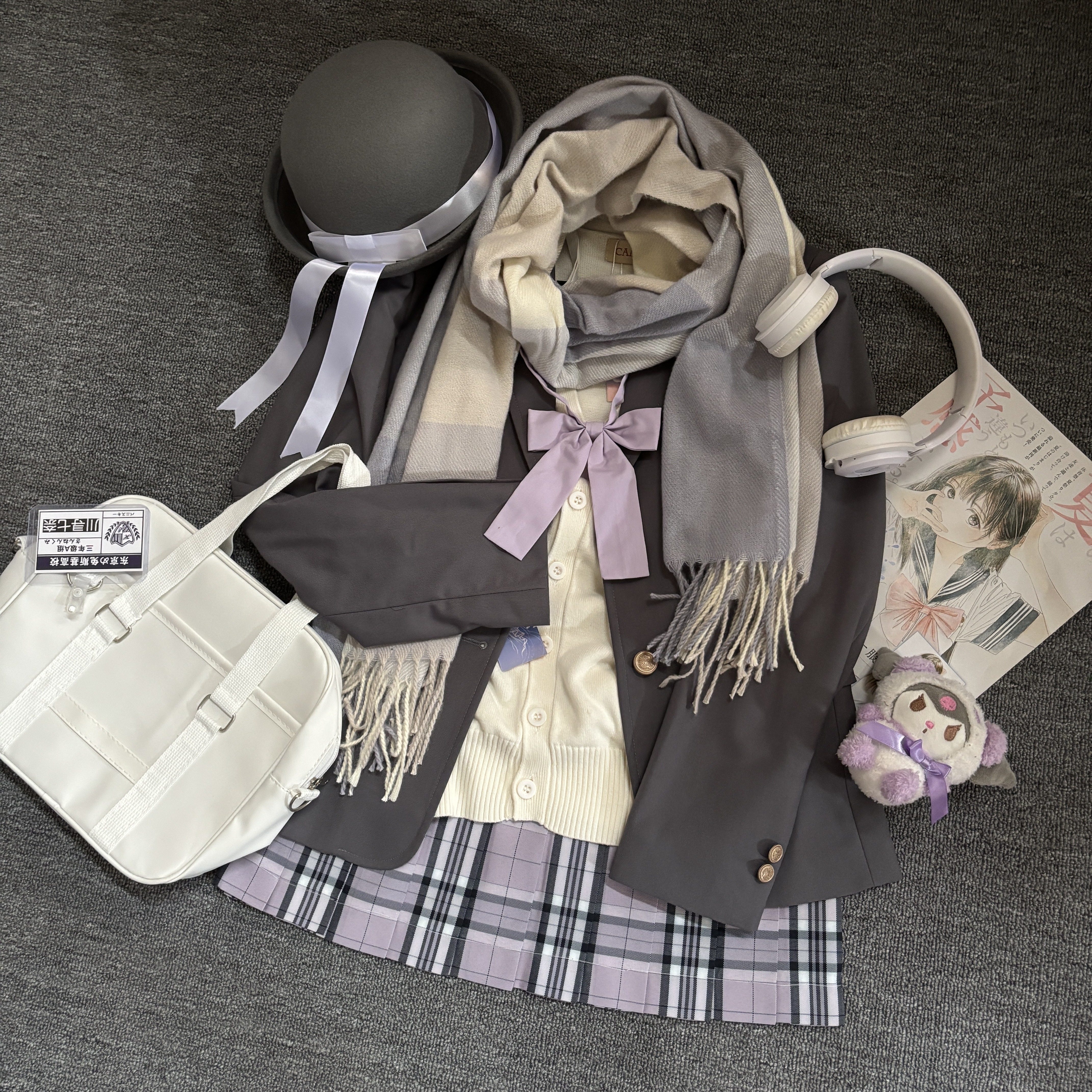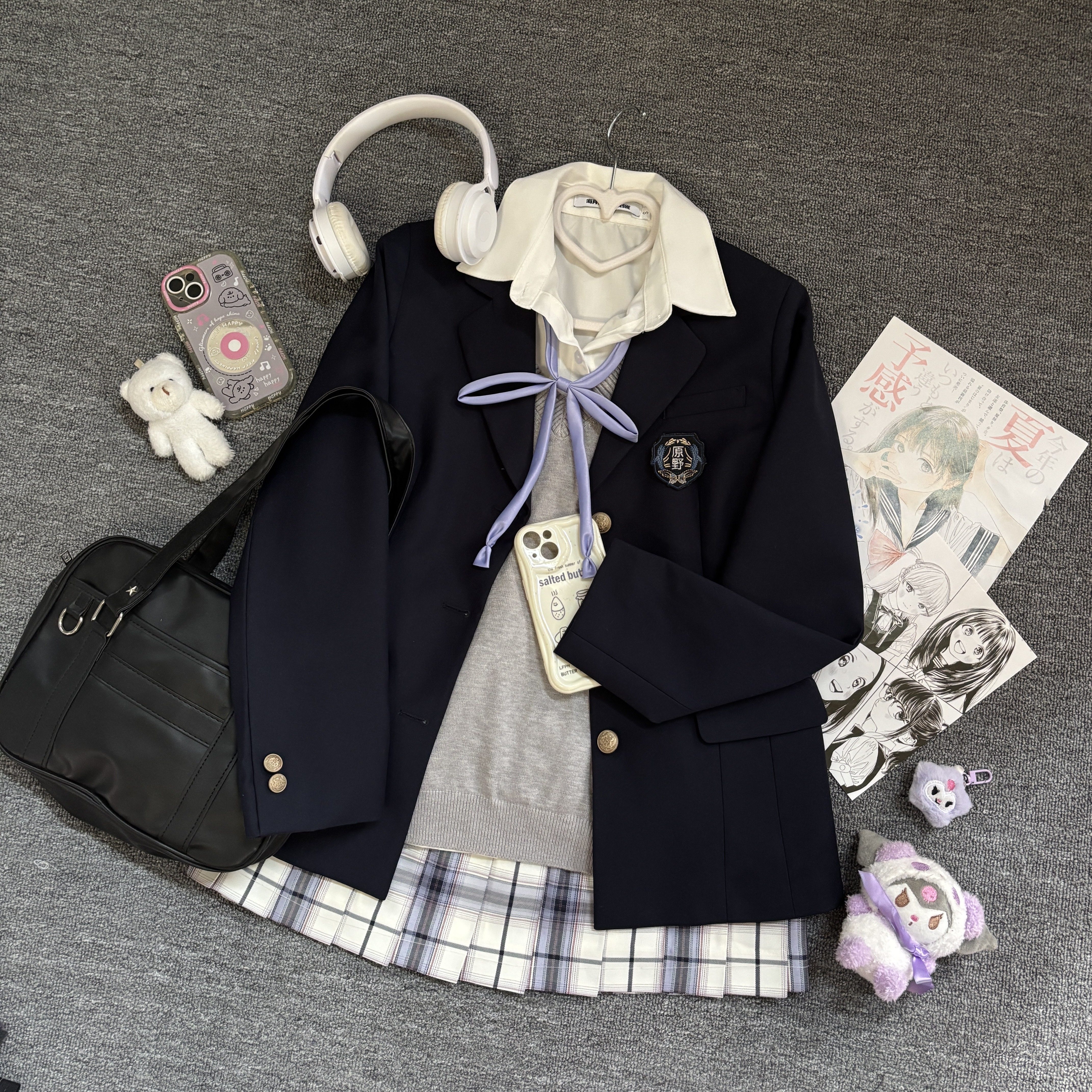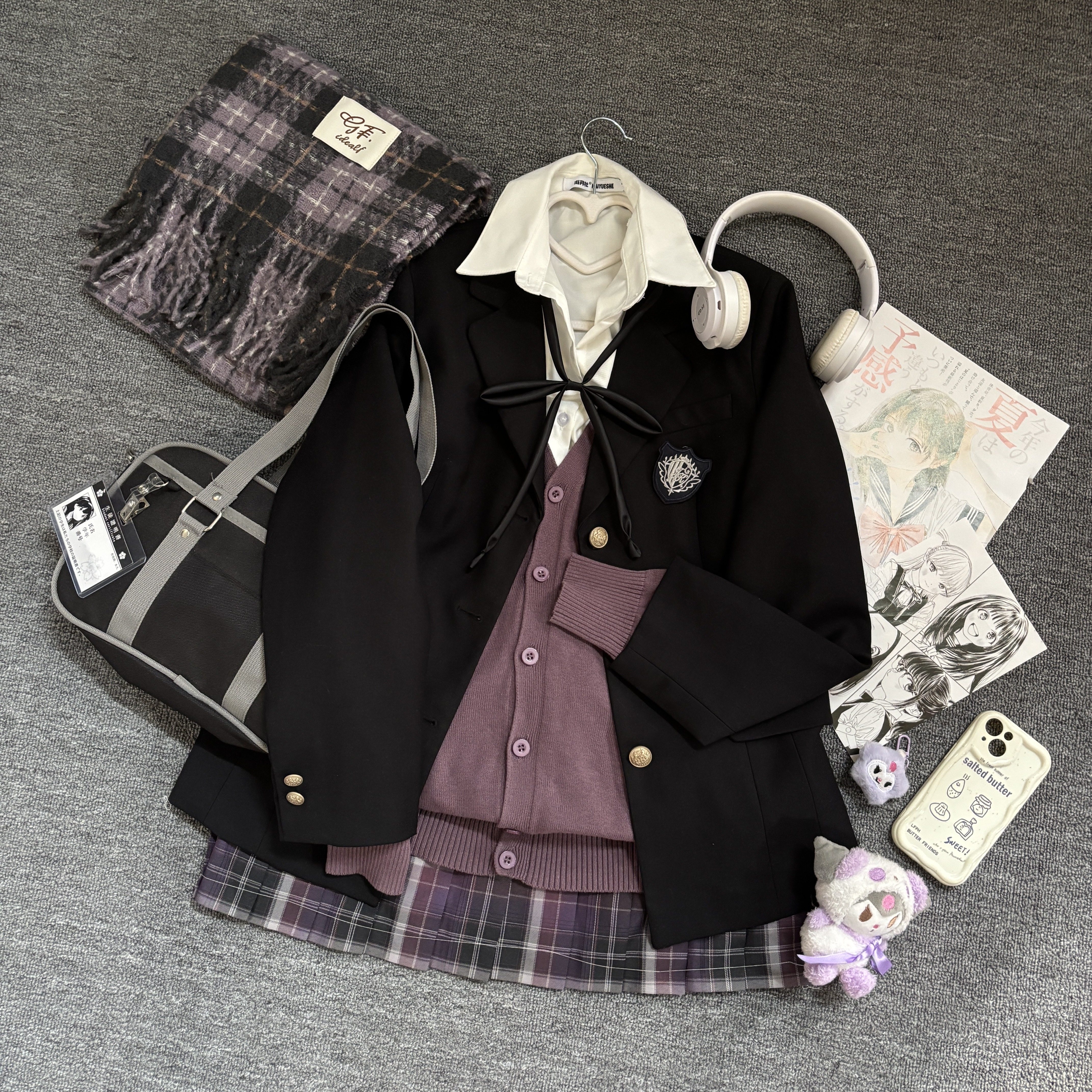 【紫色系JK套装】海月社原创JK紫色系列穿搭西服开衫毛衣格裙叠穿