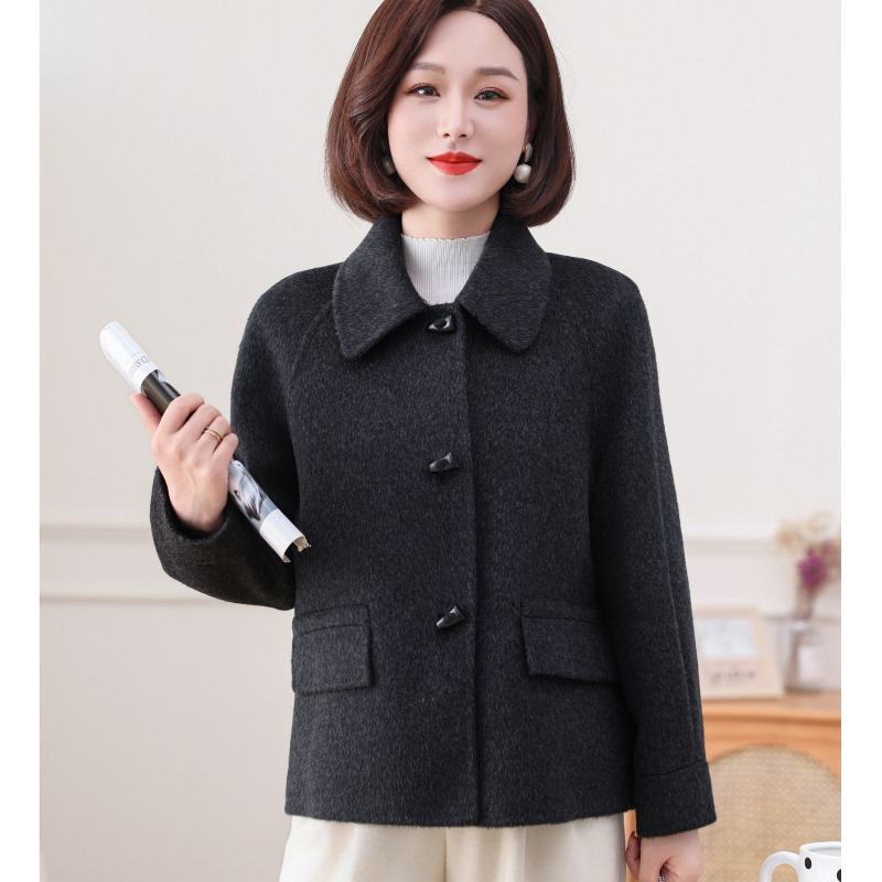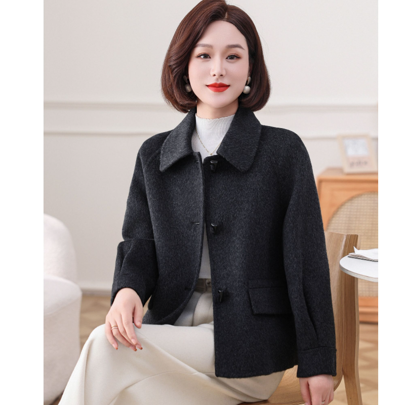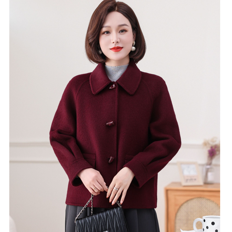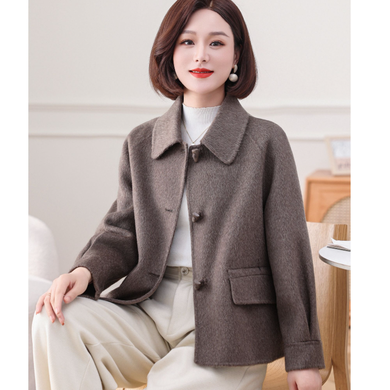 孜洋秋冬双面羊毛大衣短款女小方领骆驼绒毛呢子外套5221