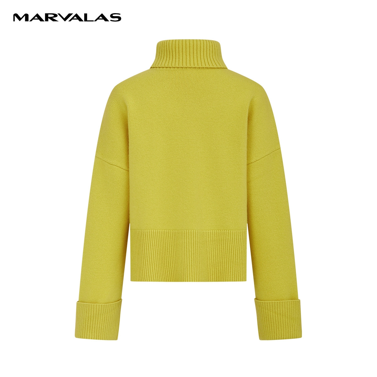 【粉丝专属】曼德诗高领毛衣女2023冬季新款短款全羊毛针织套头衫