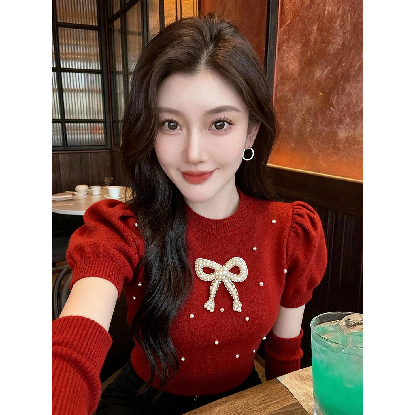 圣诞节氛围感穿搭蝴蝶结红色毛衣女2025秋冬新款高级感辣妹针织衫