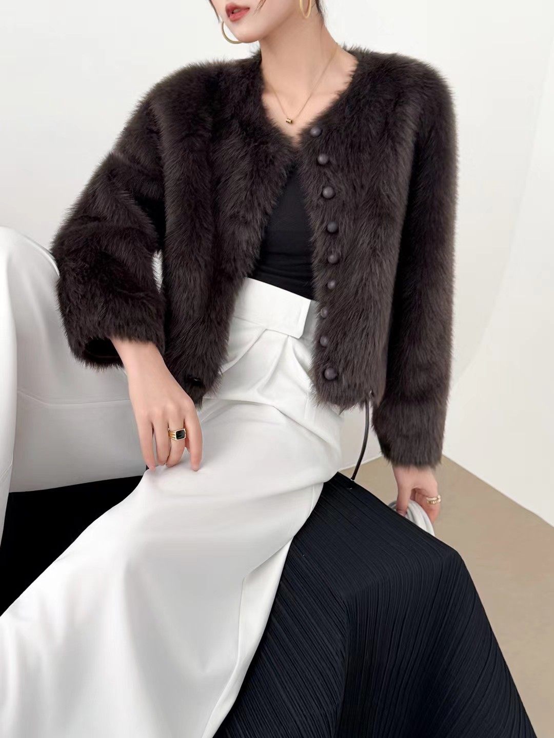 2026冬季新款女士带钻插扣皮草外套