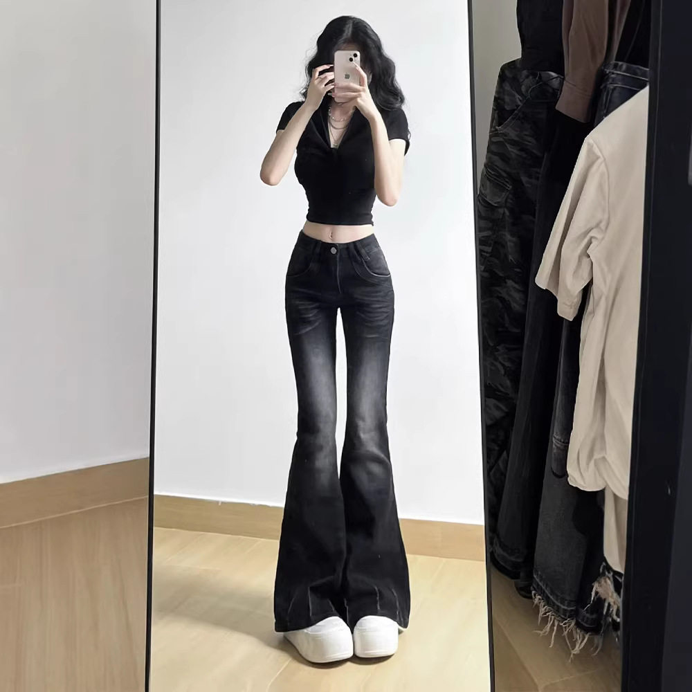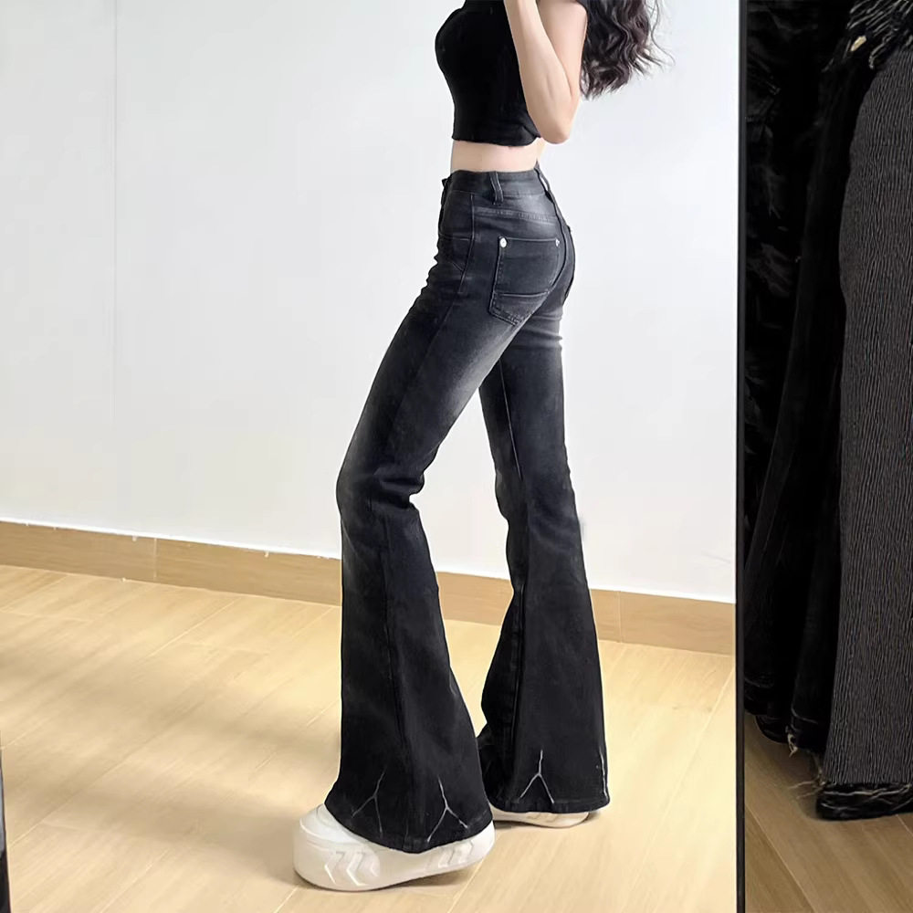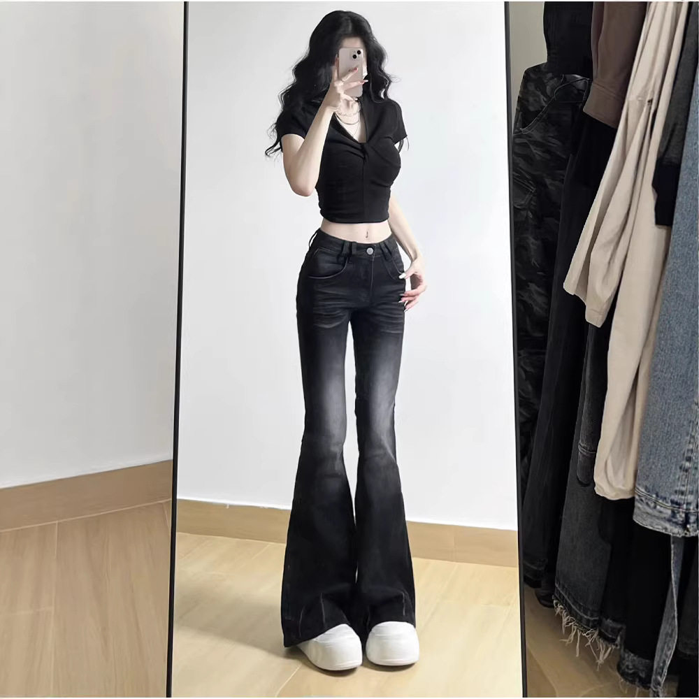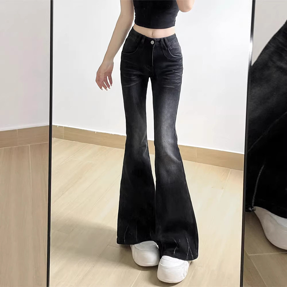 美式黑色渐变水洗微喇叭牛仔裤女秋冬2025新款修身马蹄裤子