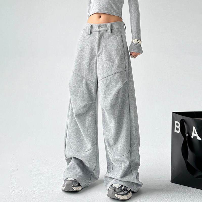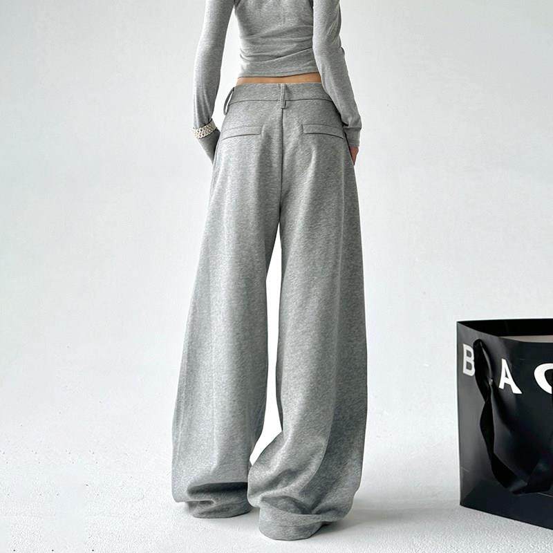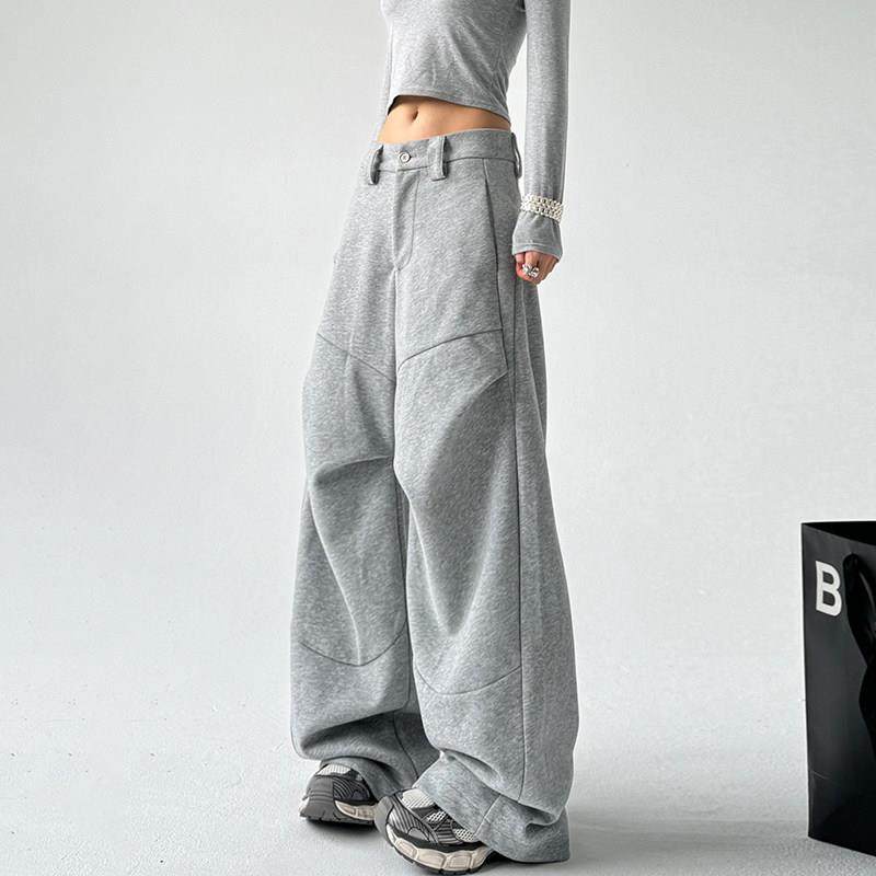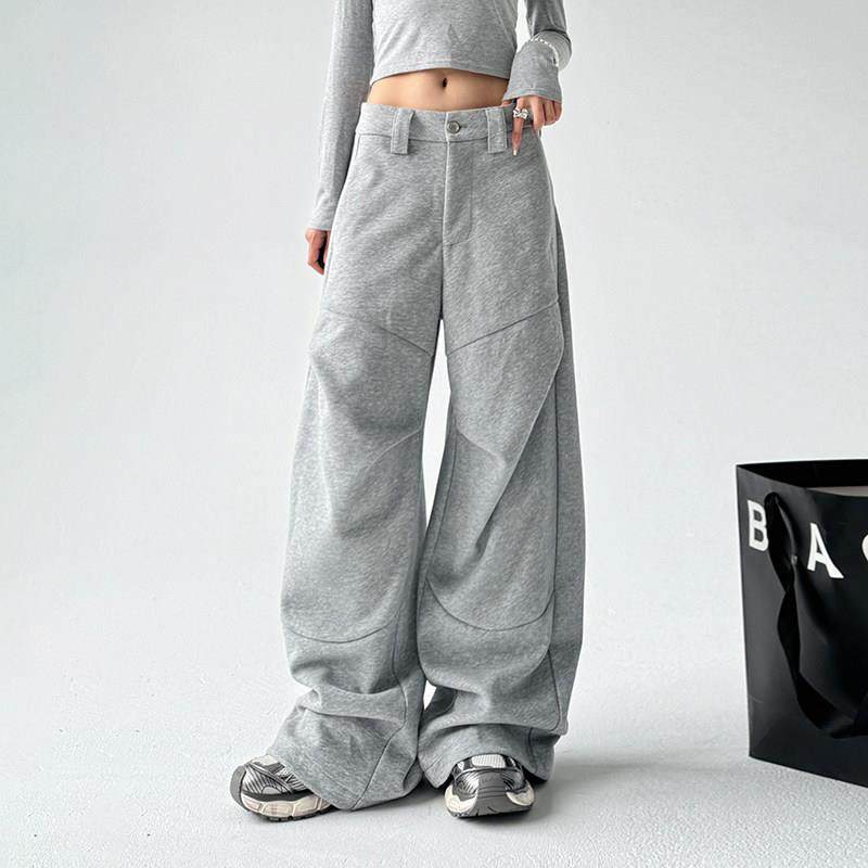 首页> 女装> 灰色重磅运动卫裤女2025春季新款宽松褶皱设计感直筒阔腿休闲长裤