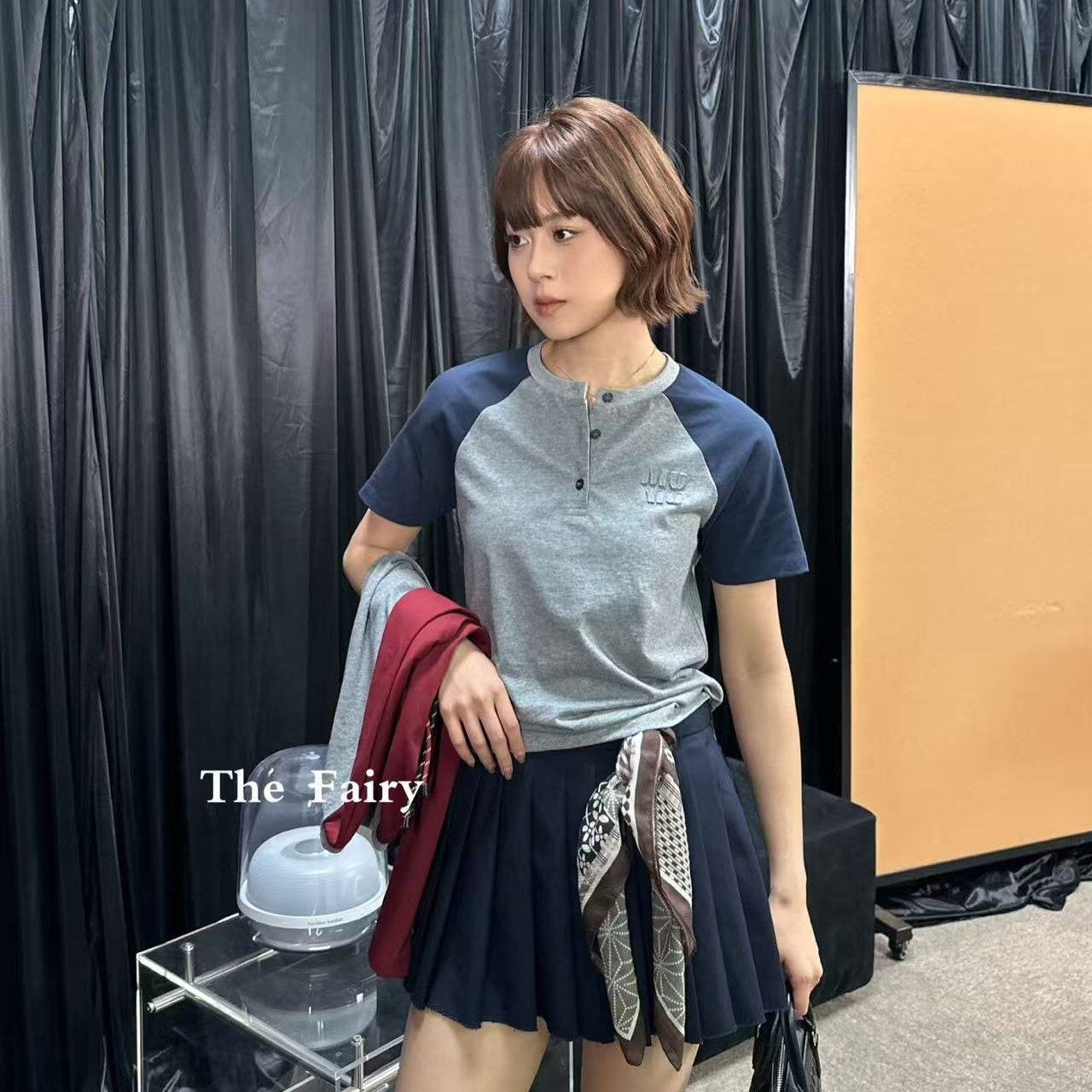 好漂亮插肩袖拼色T恤女2026年早春新款短上衣名媛气质时尚显瘦潮