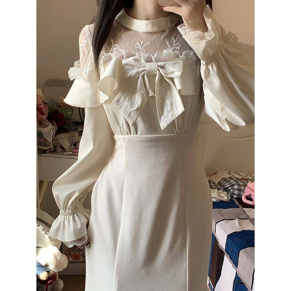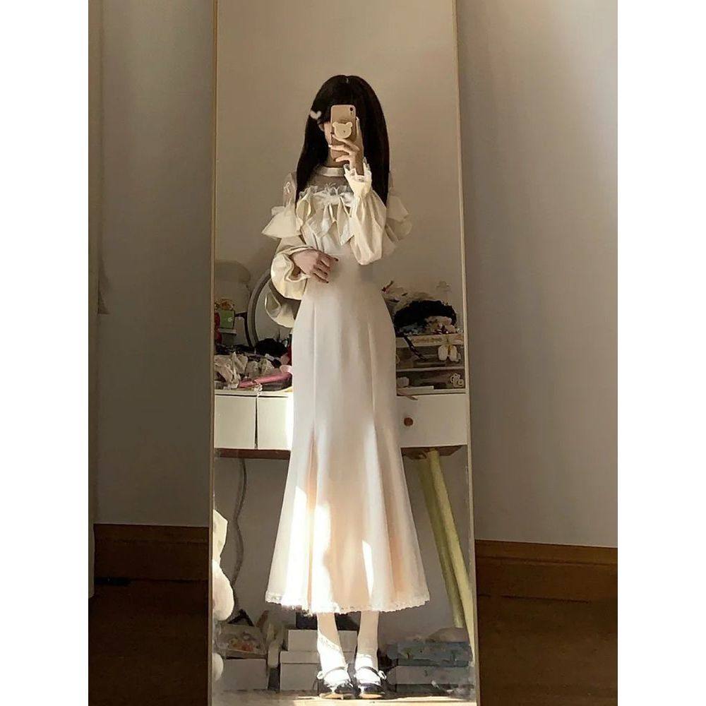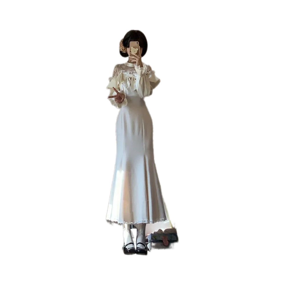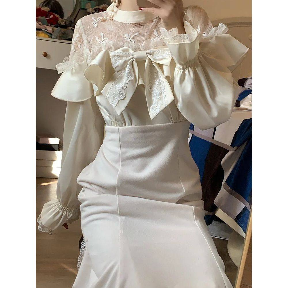 【云皎轻盈】法式温柔气质设计鱼尾裙秋冬季蕾丝显瘦收腰连衣裙