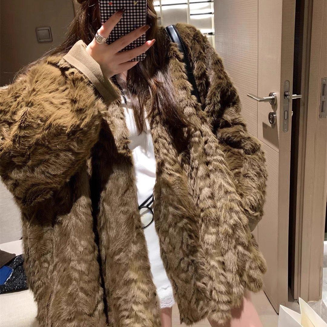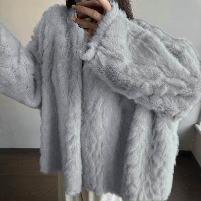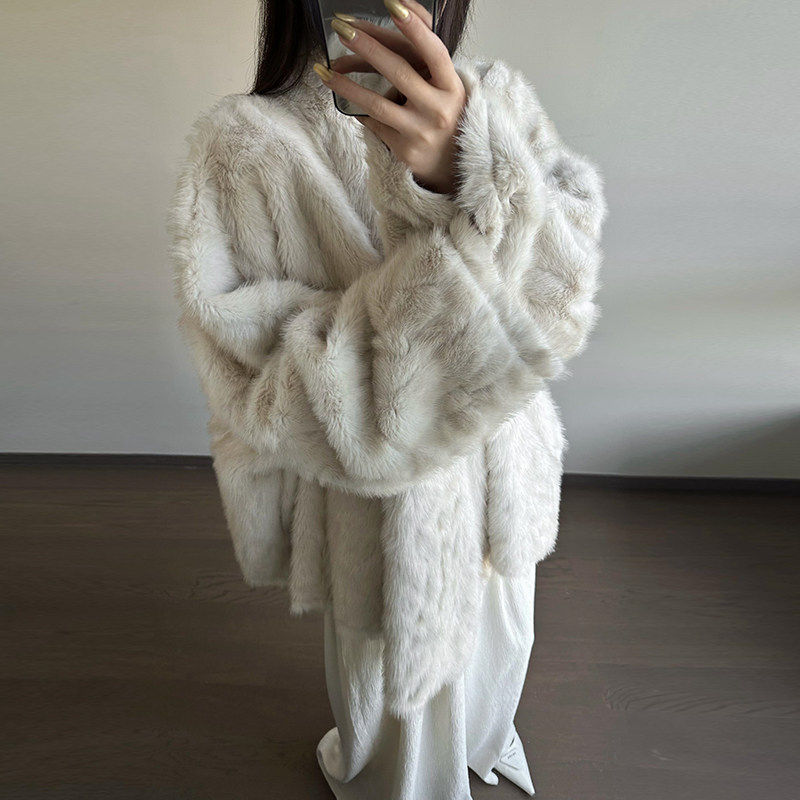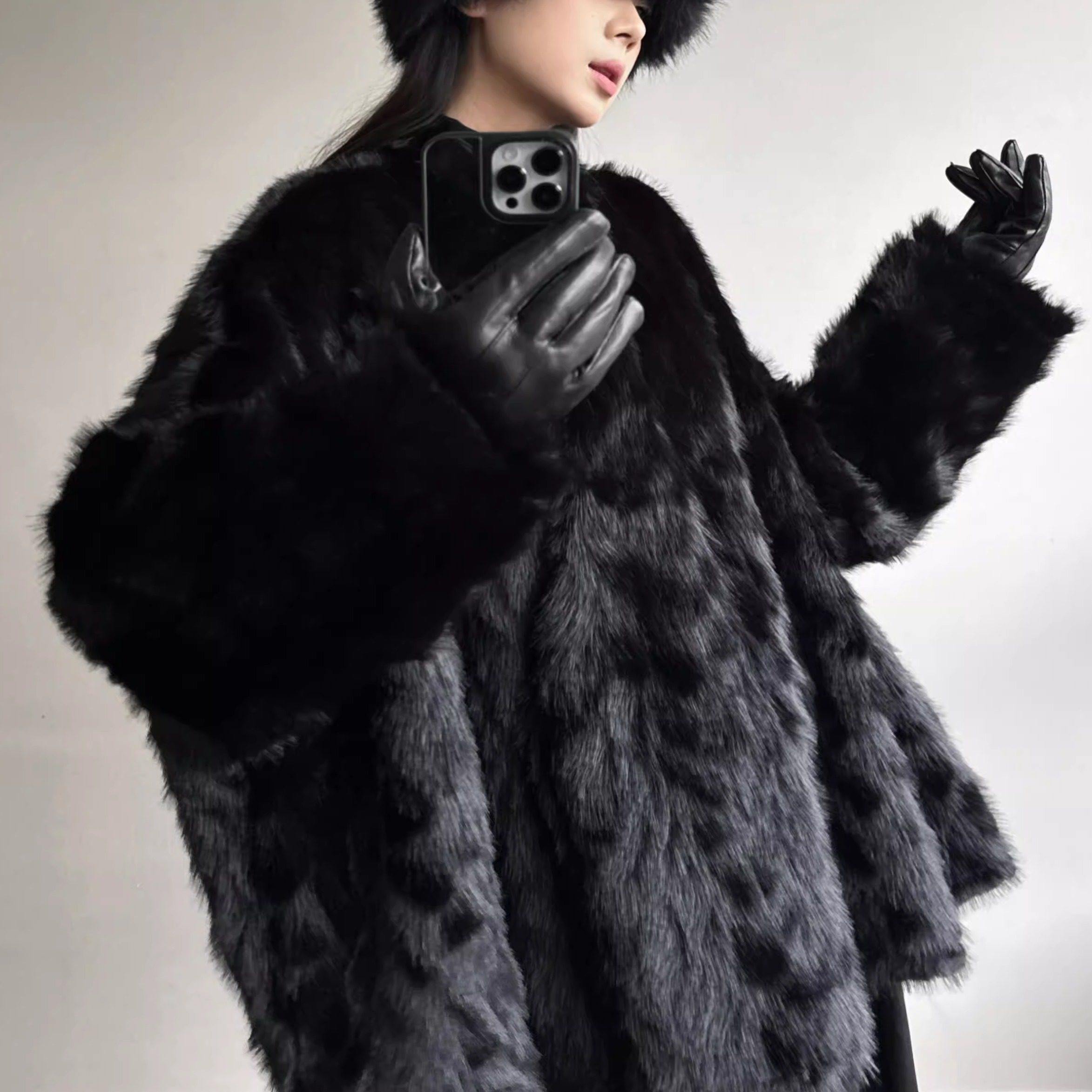 云雾石狐厚实保暖蝙蝠袖皮毛一体披肩式外套女慵懒顺滑环保毛大衣