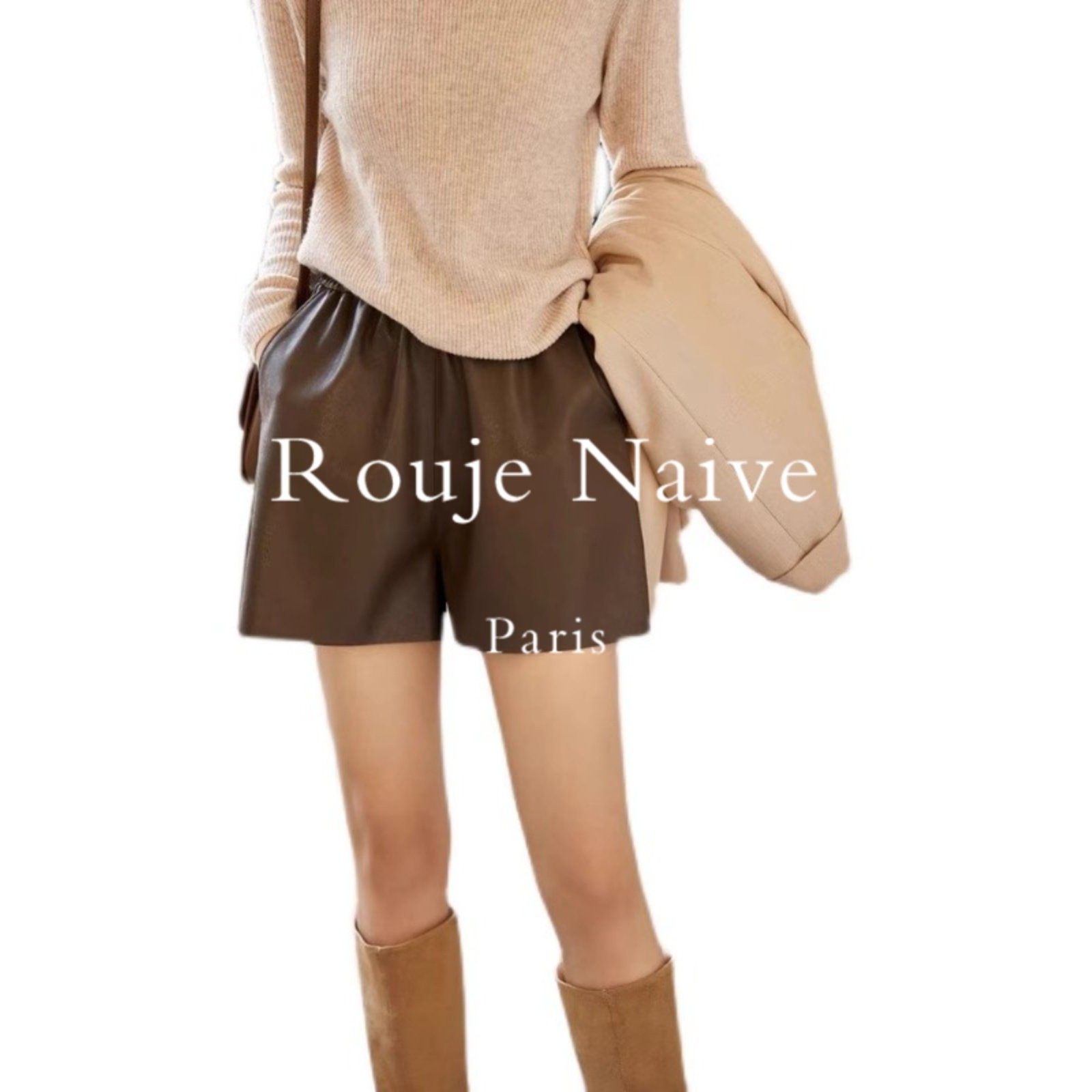 Rouje Naive美拉德真皮短裤女宽松直筒外穿2025秋冬百搭阔腿裤子