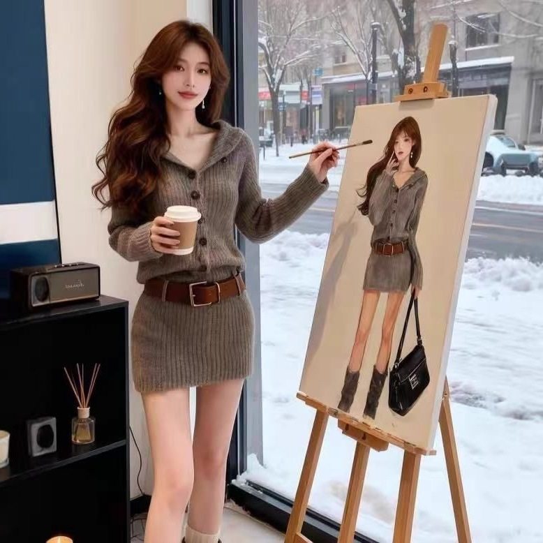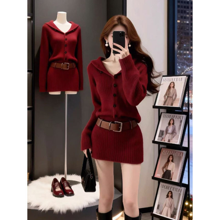 千金感气质辣妹红色针织连衣裙女装春季新款约会收腰包臀短裙