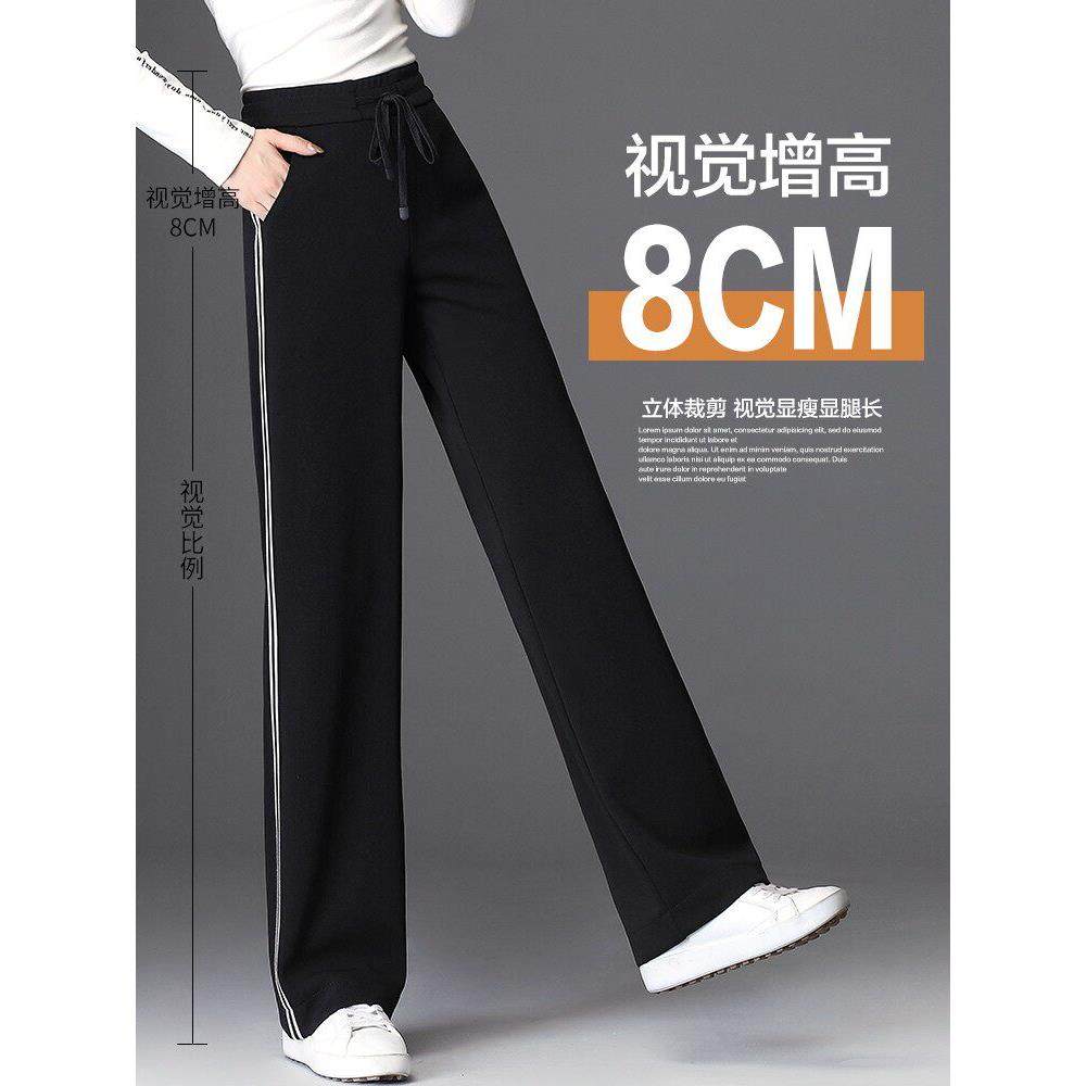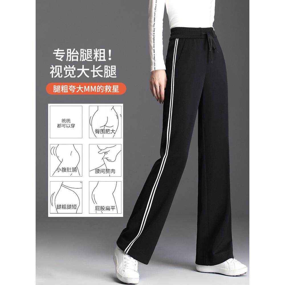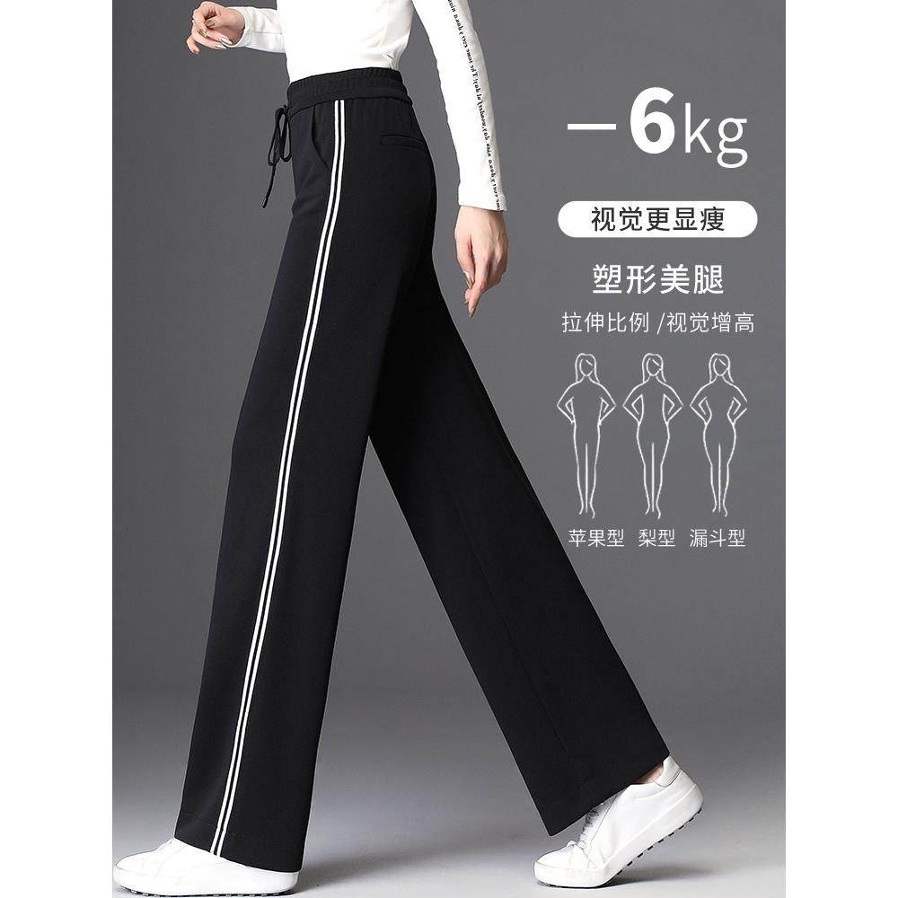 首页> 女装> 黑色运动裤女2025春秋新款高腰垂感阔腿裤加厚侧条纹直筒裤长裤子