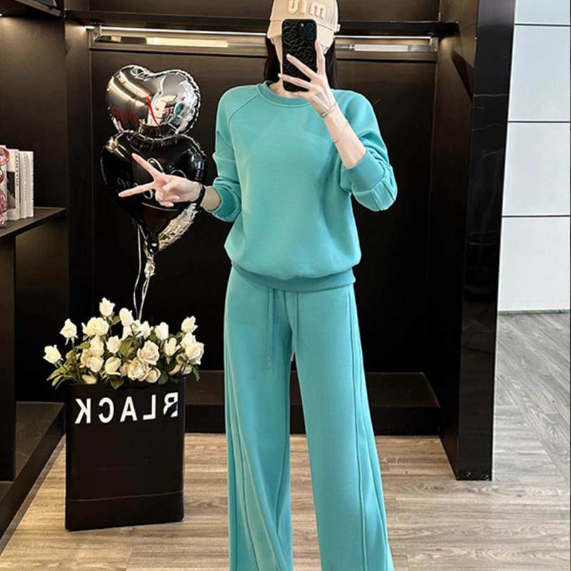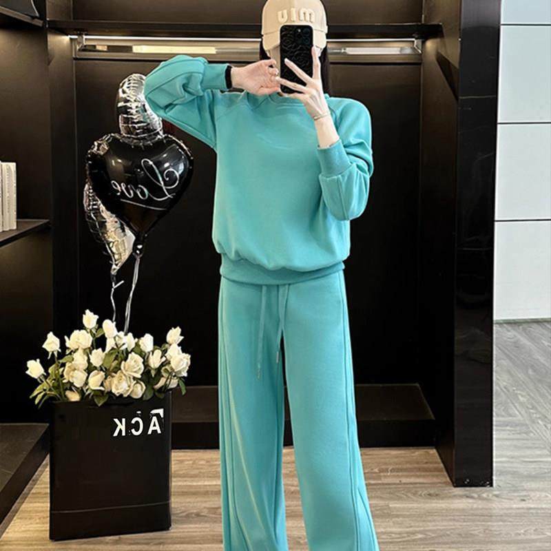 首页> 女装> 欧洲站休闲 运动套装女2025新款春秋季多巴胺粉色卫衣阔腿裤两件