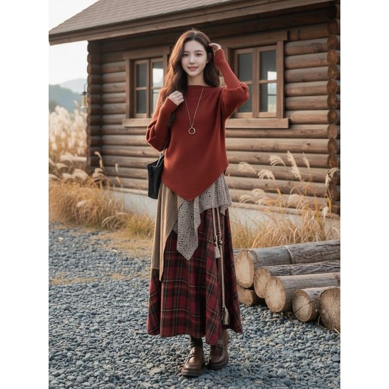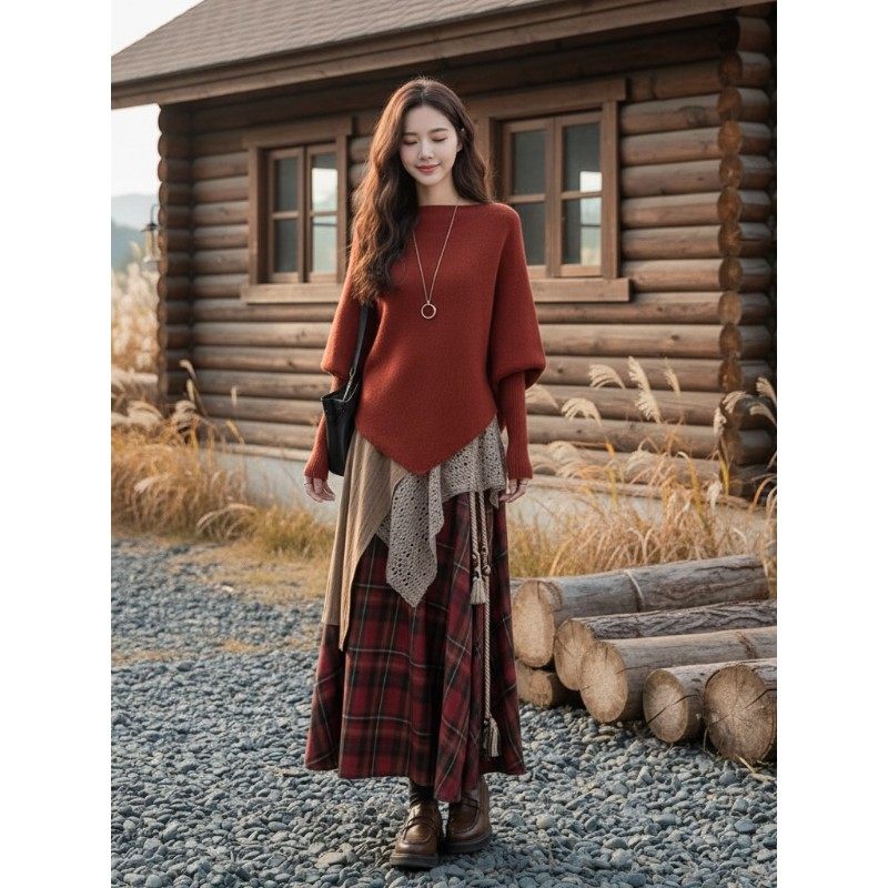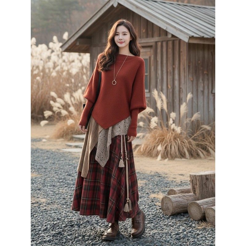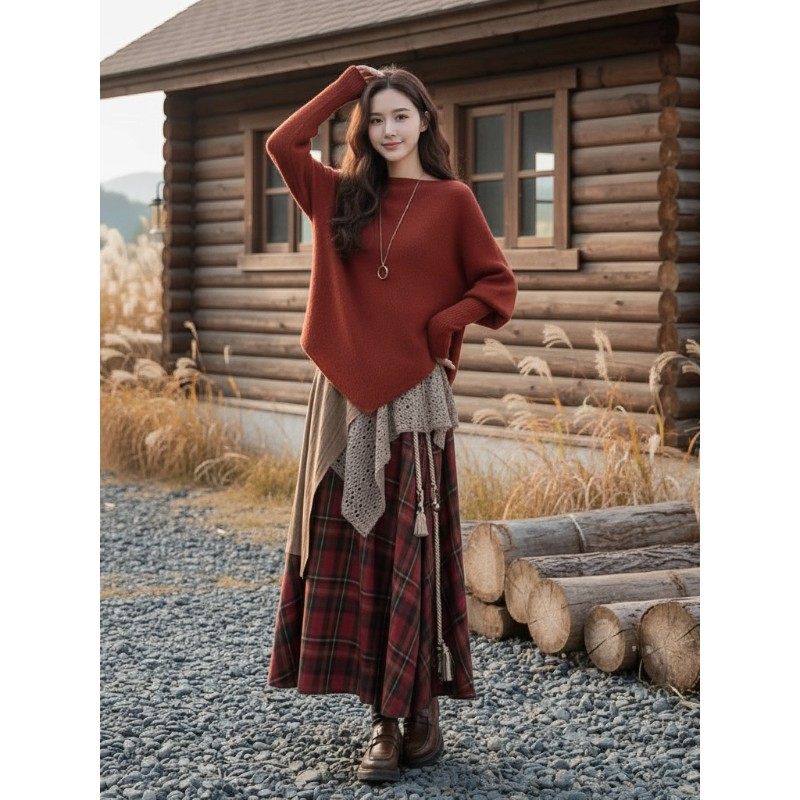 巨好看独特漂亮2025新款秋冬一整套穿搭耶诞元旦毛衣两件式套装裙