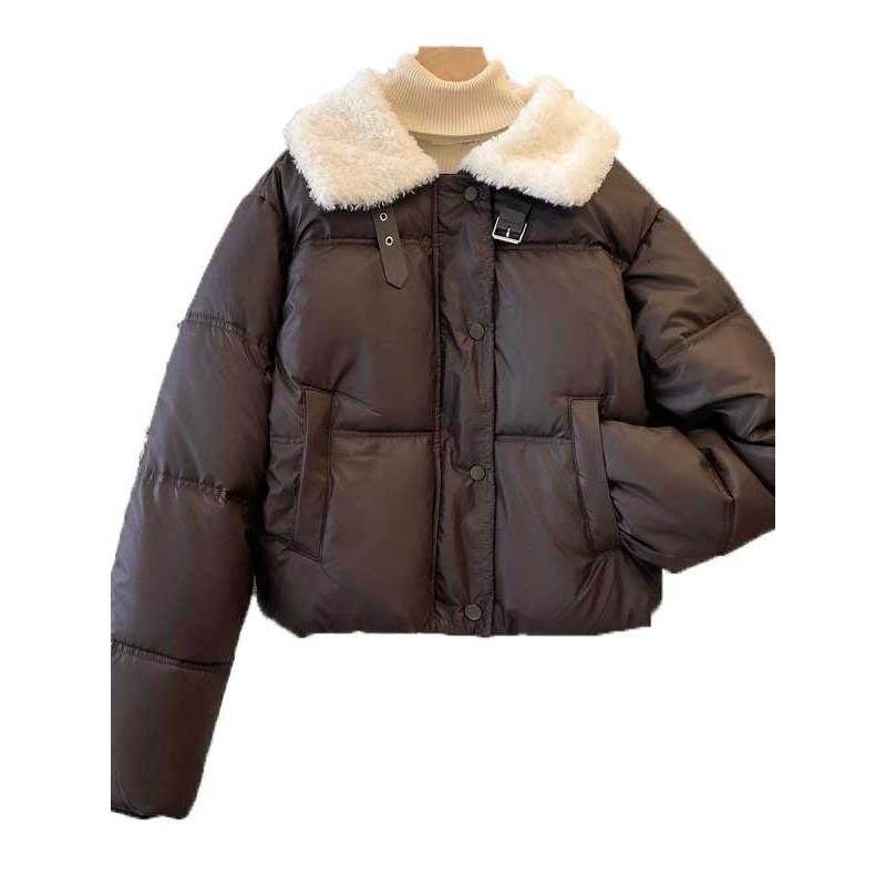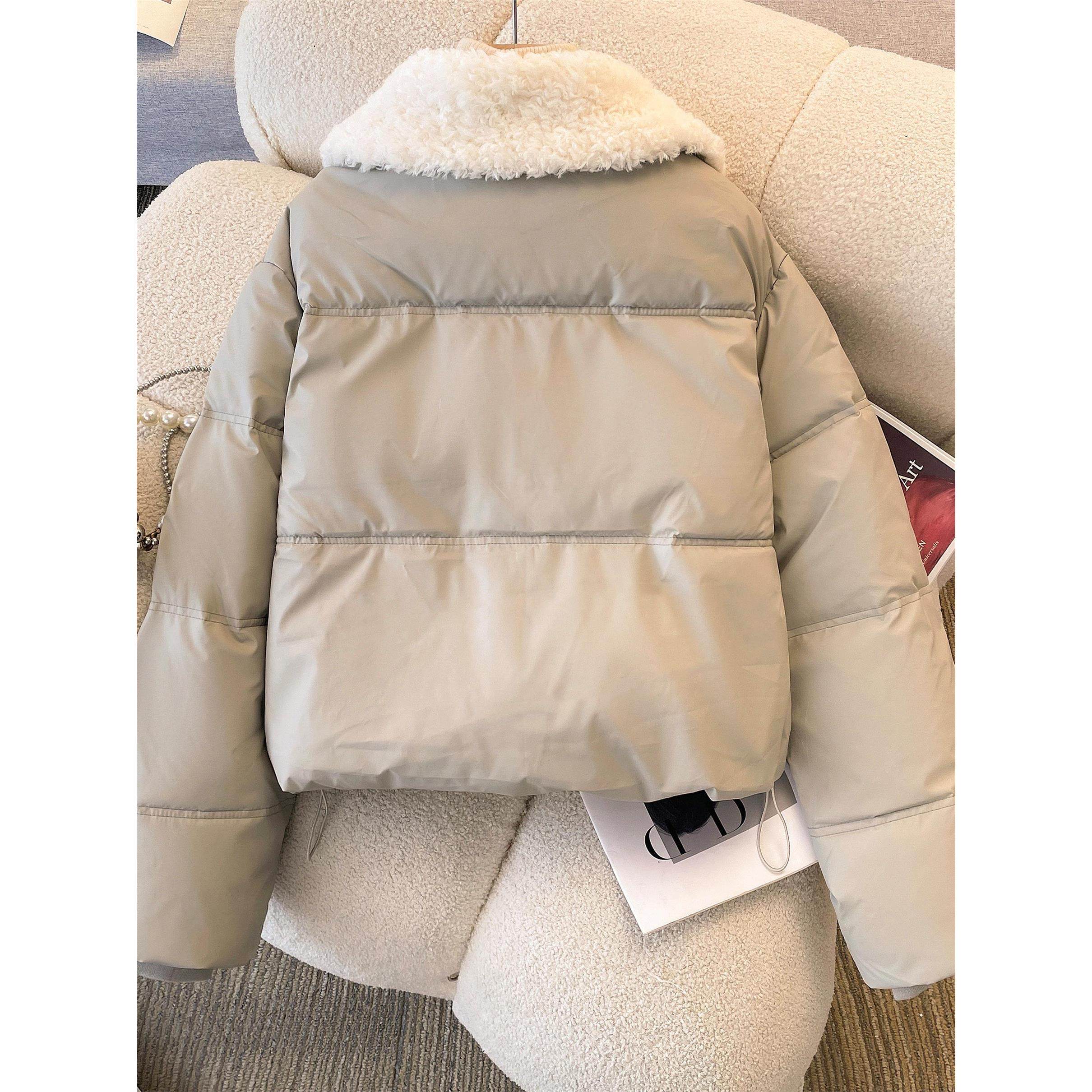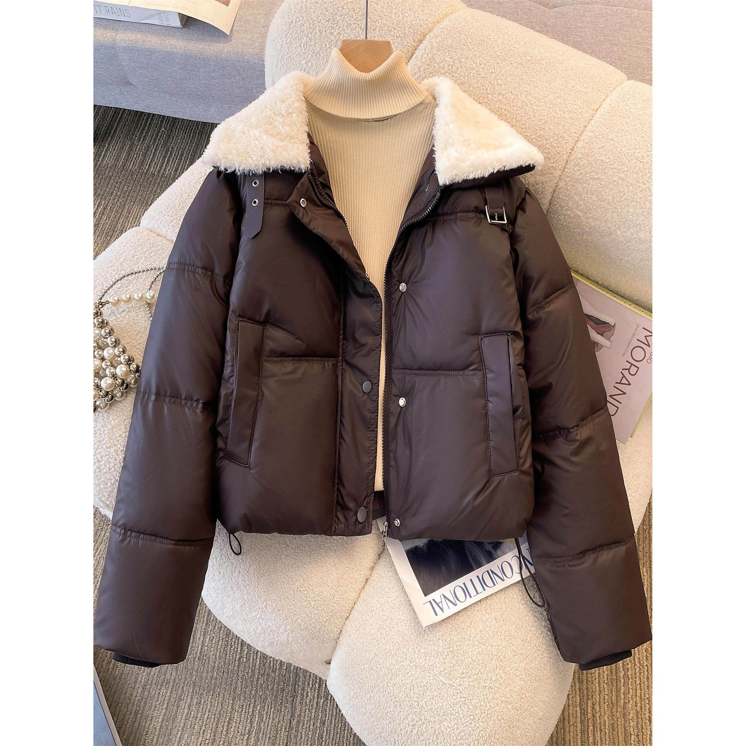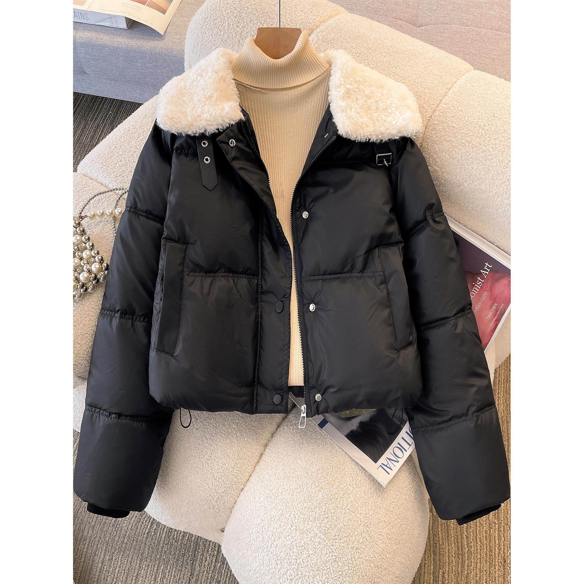 羊羔毛领羽绒棉服女2025秋冬新款大码胖mm短款面包服加厚棉衣外套