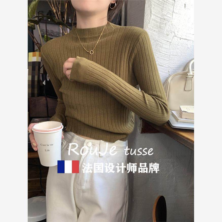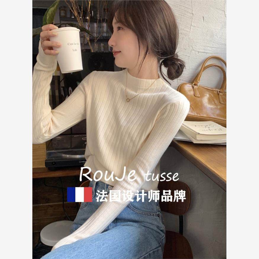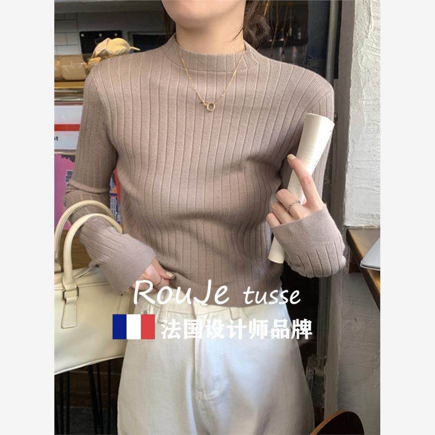 Rouje tusse高级感修身短款羊毛针织打底衫秋冬半高领羊绒毛衣女