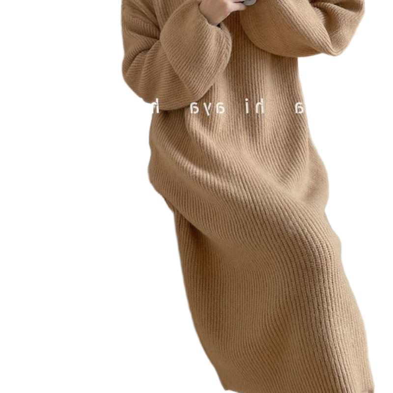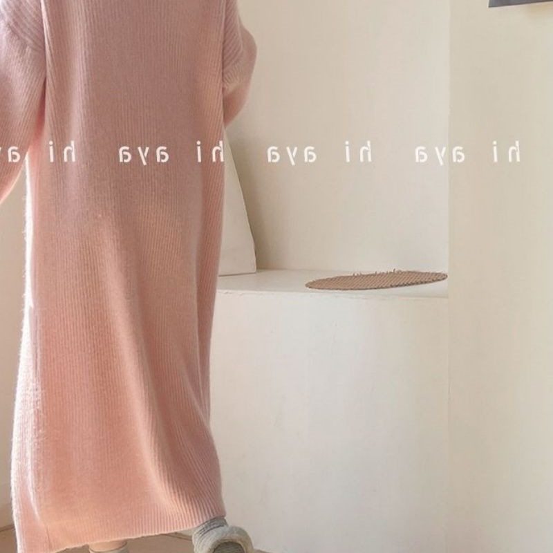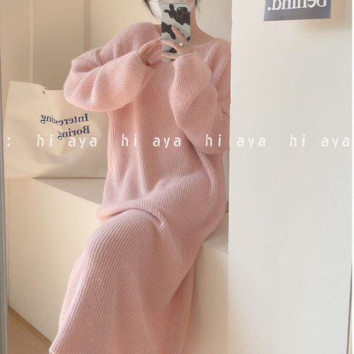 温柔风连衣裙女秋冬中长款过膝气质名媛穿搭针织宽松毛衣长裙内搭