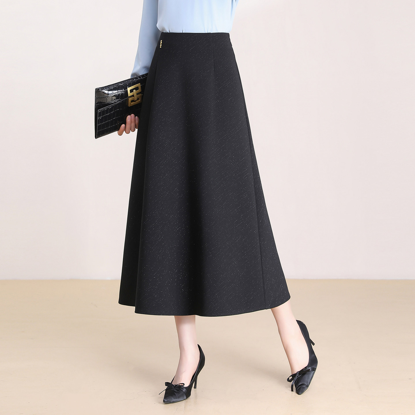 2026春季新款亮丝银线半身裙女高腰显瘦A字裙垂感气质通勤中长裙