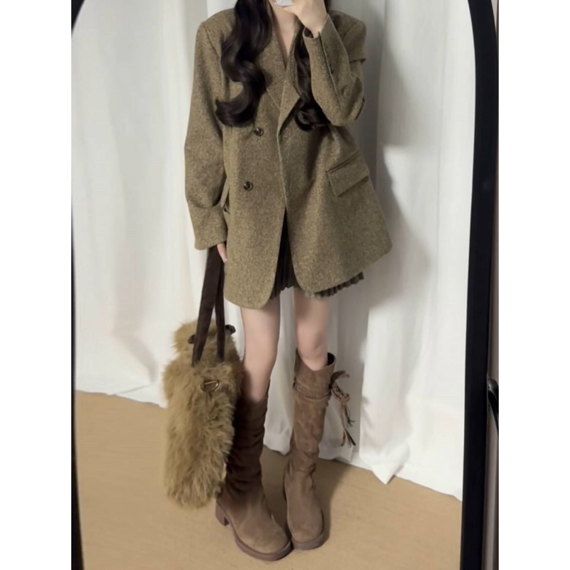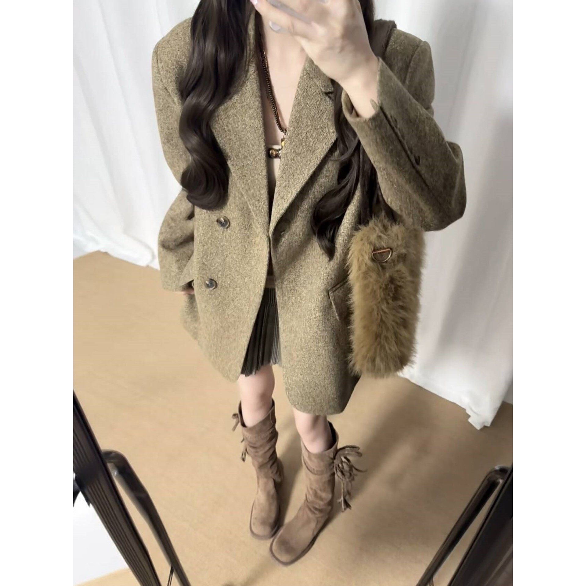 冬季老钱风羊毛呢小西装外套女高级感气质小个子覆古宽松休闲大衣