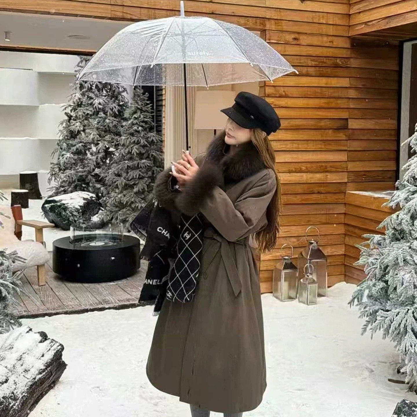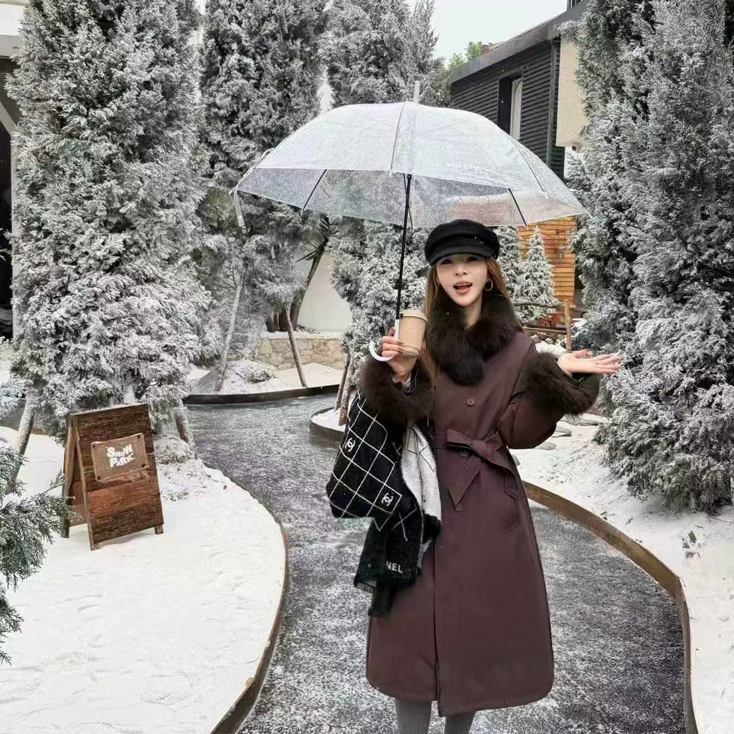 韩国东大门同款派克服带毛领保暖羽绒服外套(可拆毛领+腰带腰绳)