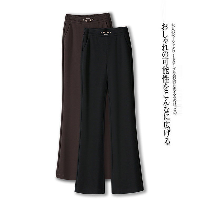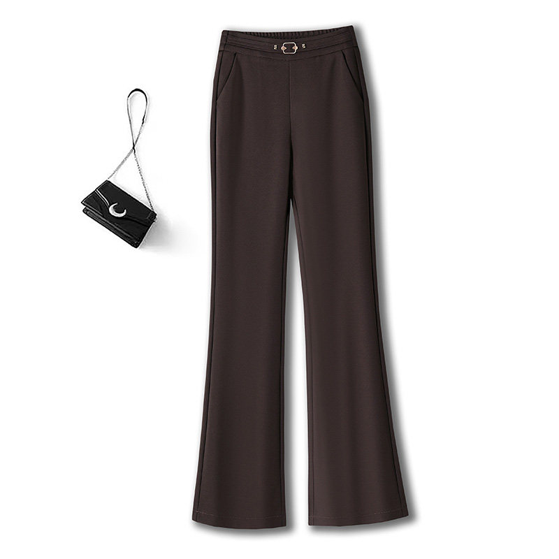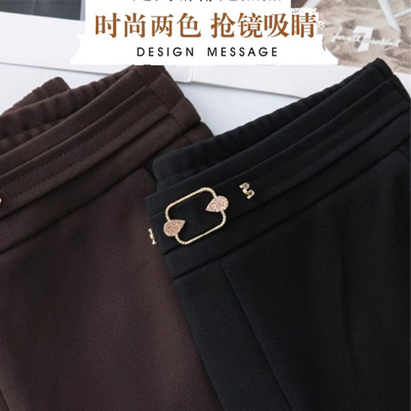 啄木鸟秋冬黑色微喇西装裤女垂感松紧腰显瘦喇叭裤百搭加绒休闲裤