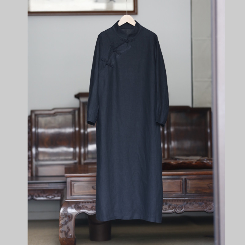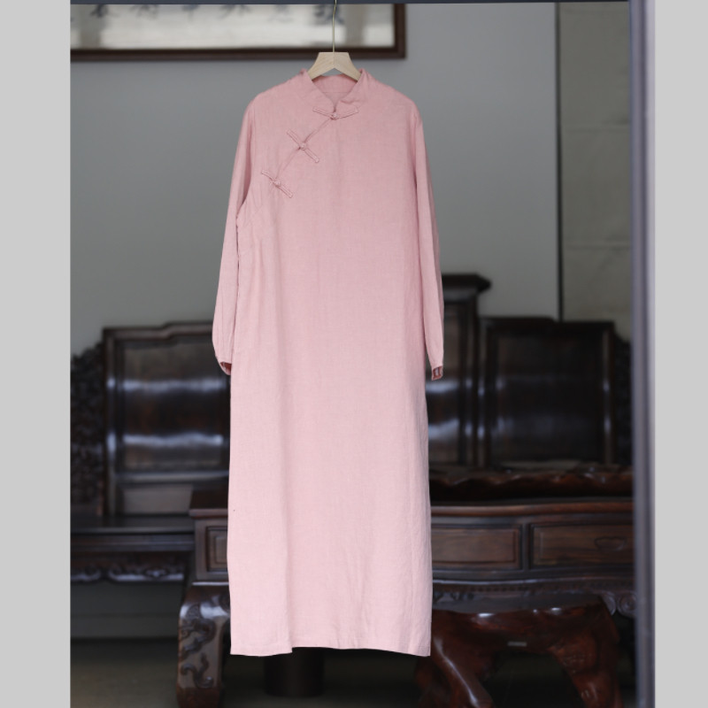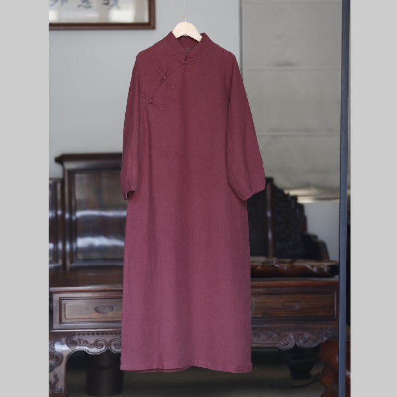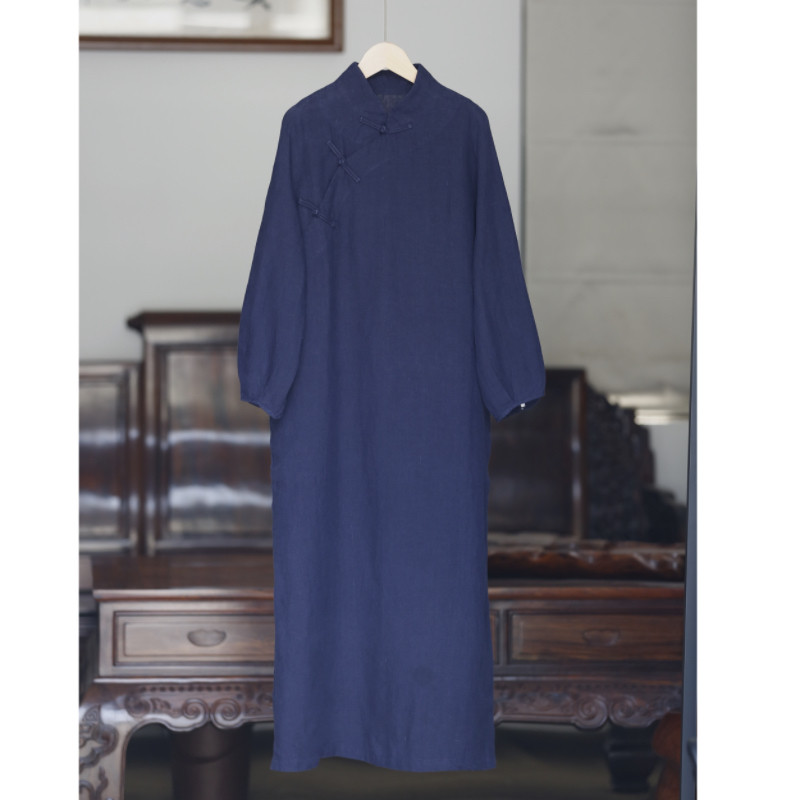如素慢衣汉麻复古文艺柔软立领连衣裙40012
