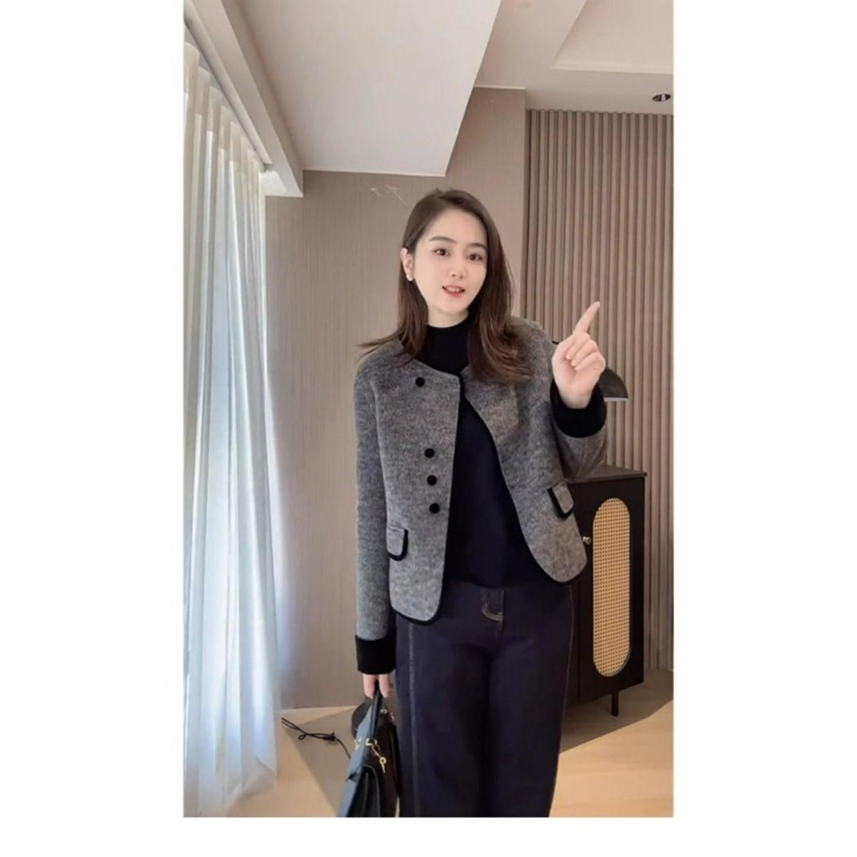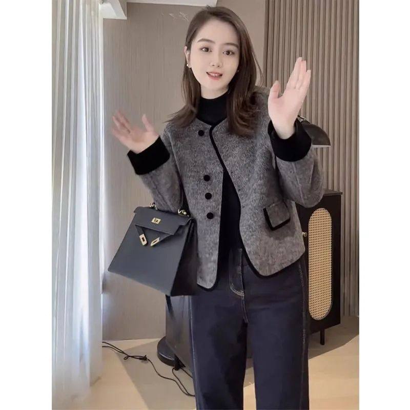 2024年秋冬网红新款时尚百搭休闲洋气简约气质小香风撞色边外套女