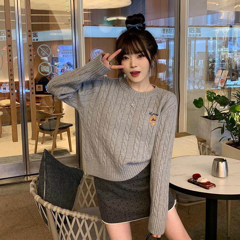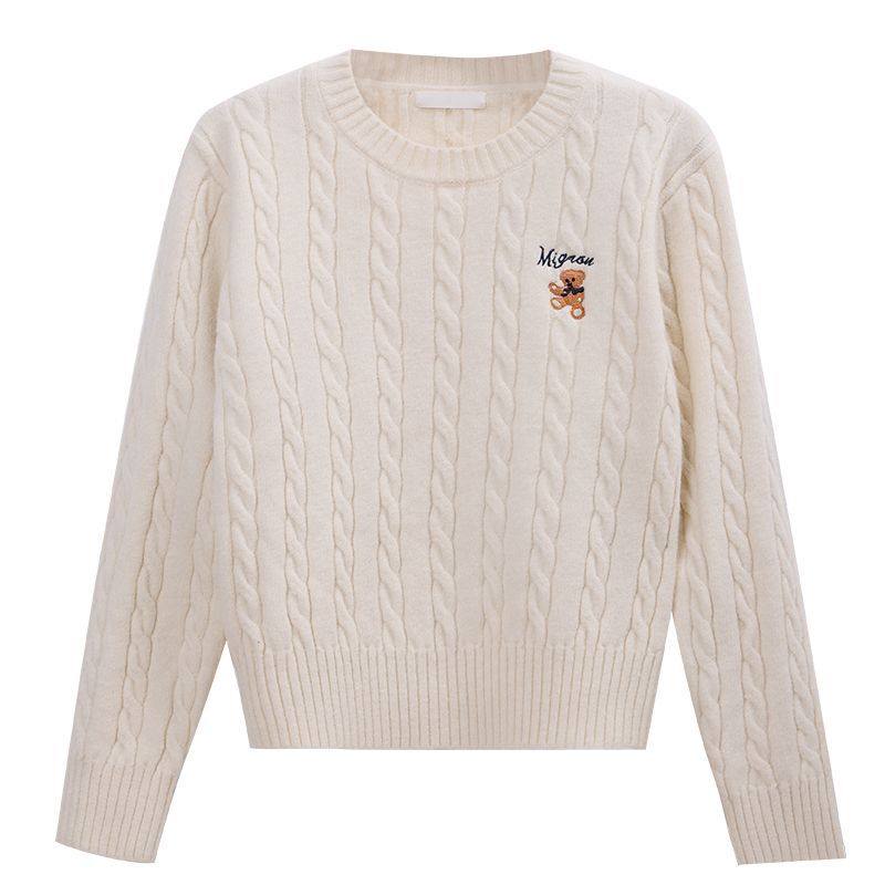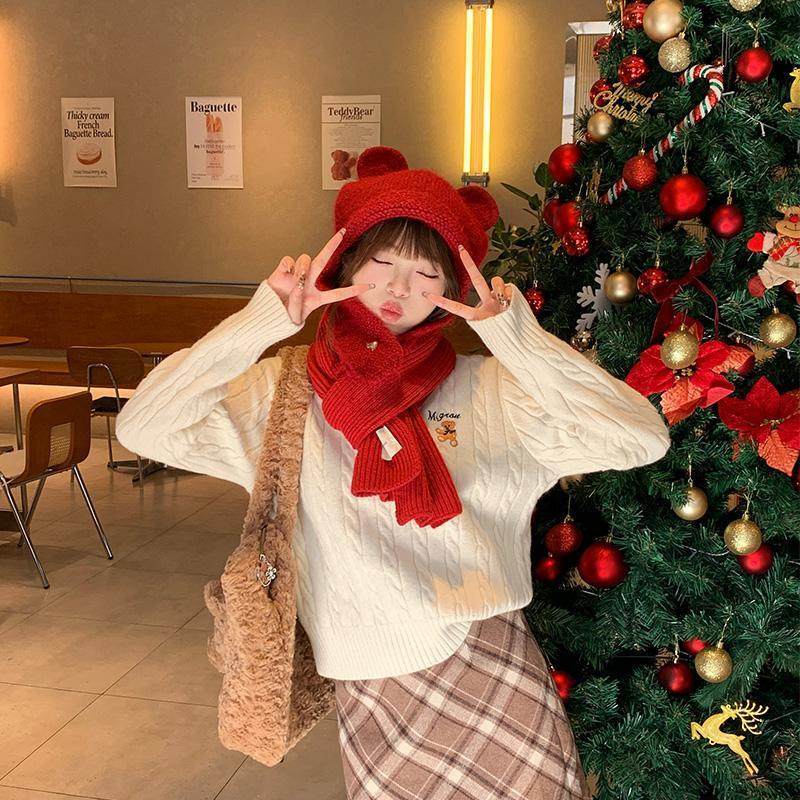 红色刺绣小熊毛衣女冬季新款新年穿搭软糯针织打底衫显瘦上衣洋气