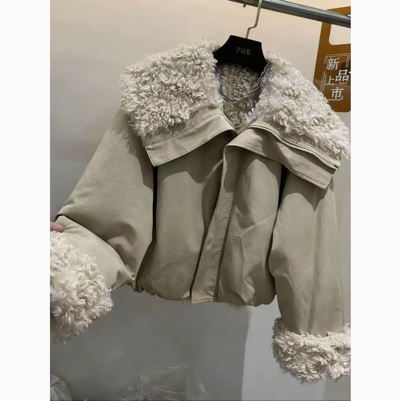 高端欧货2025年冬装新款大翻领仿羊羔毛两面穿棉服女短外套上衣