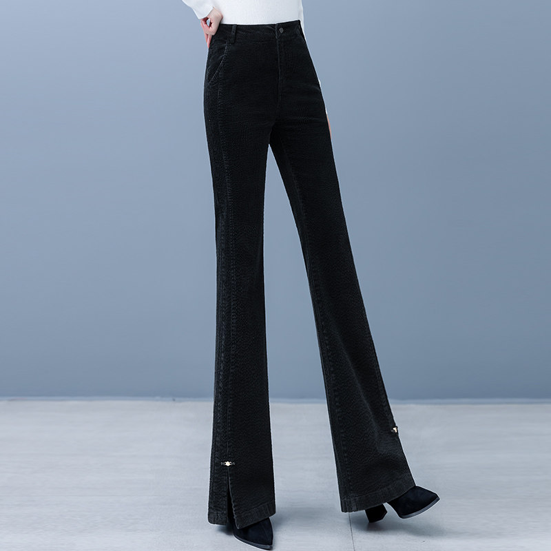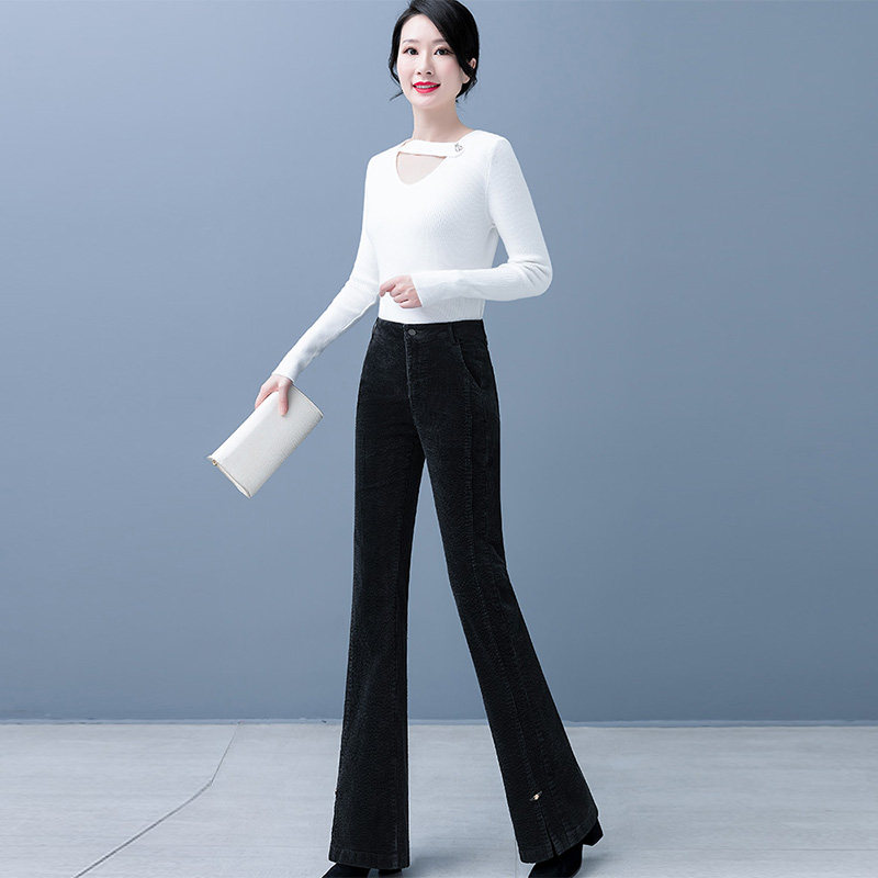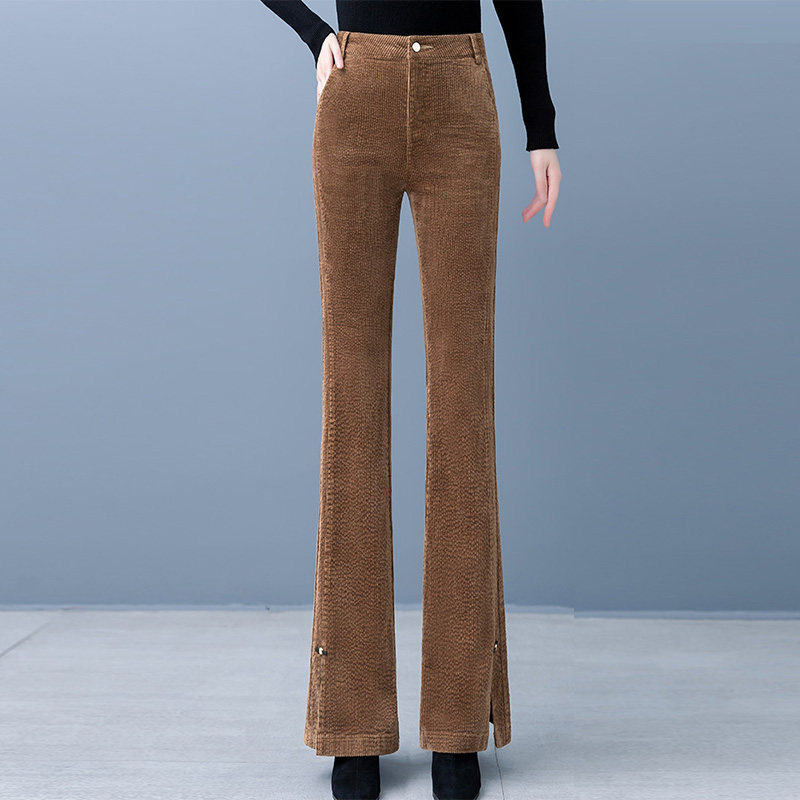 首页> 女装> 灯芯绒微喇裤女2025新款秋冬季设计感小众咖色垂感开叉条绒女裤子