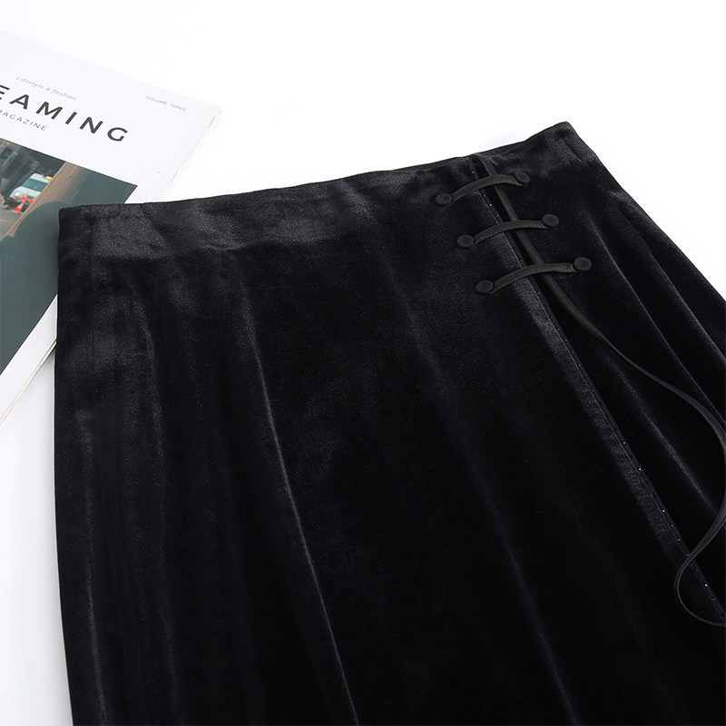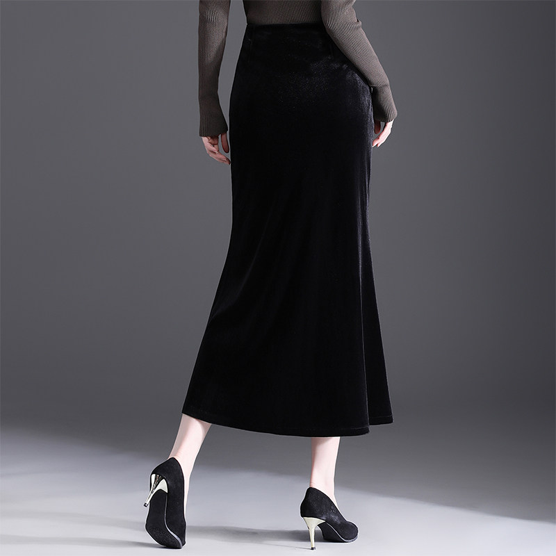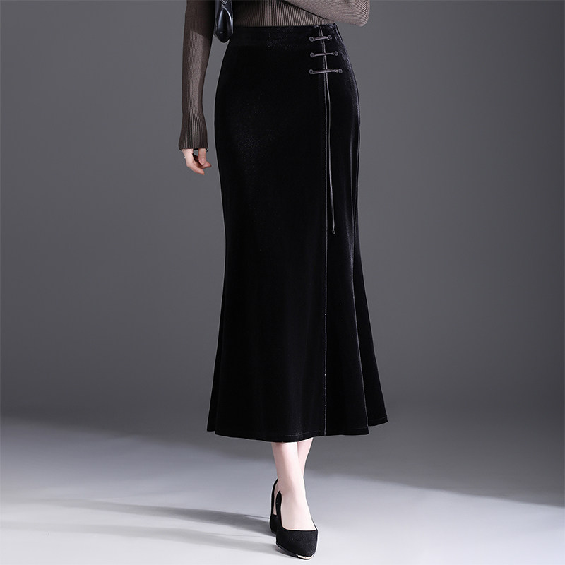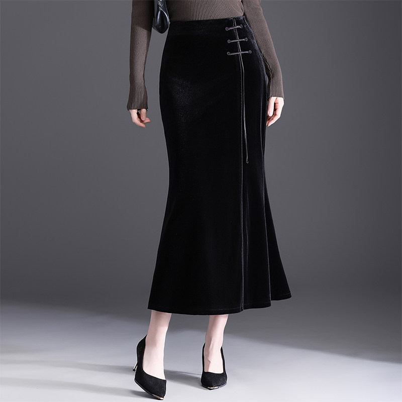 首页> 女装> 国风金丝绒鱼尾裙女2025秋冬新款优雅修身包臀半身裙一步裙中长裙