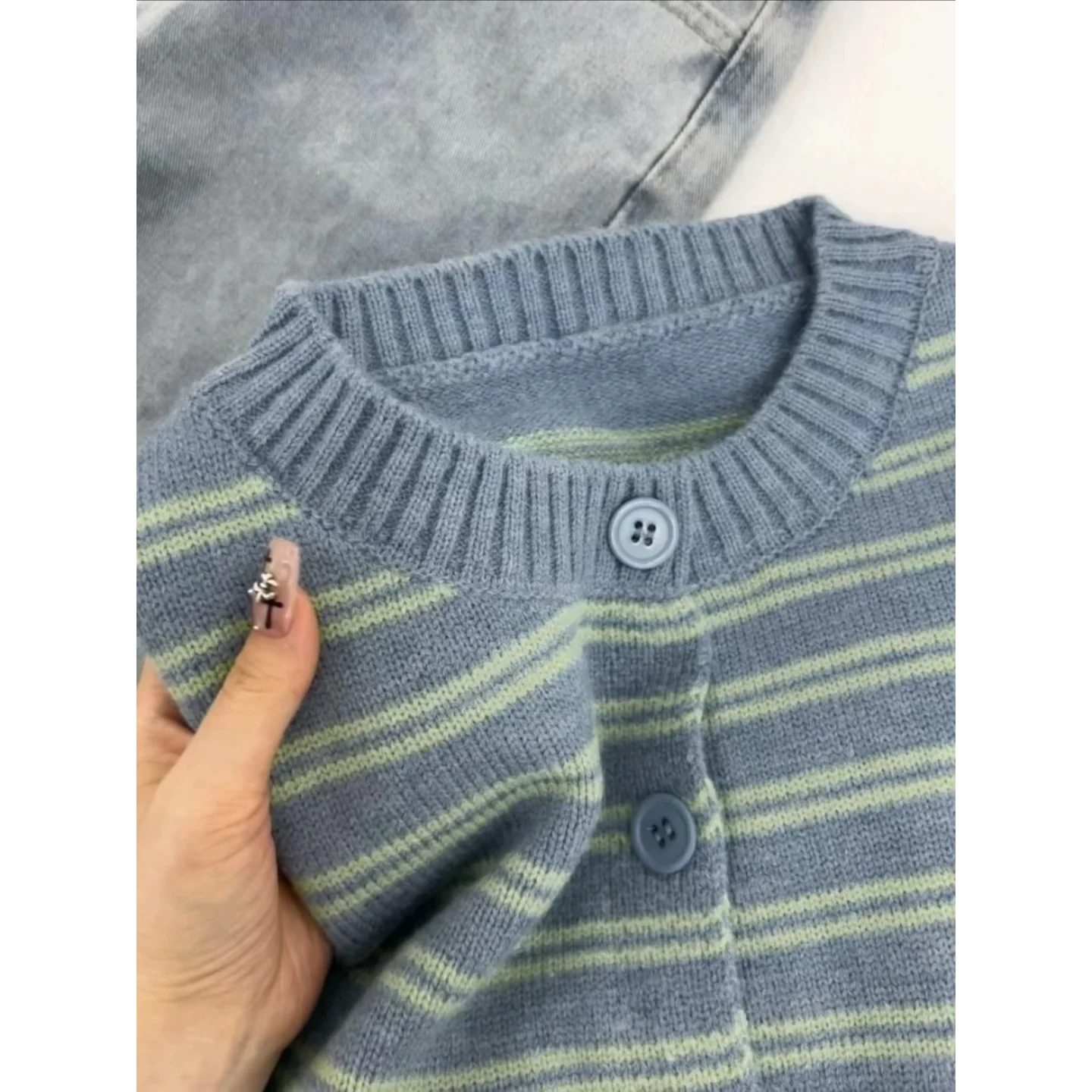 慵懒学院风减龄复古条纹长袖针织开衫毛衣外套女秋季时尚百搭上衣