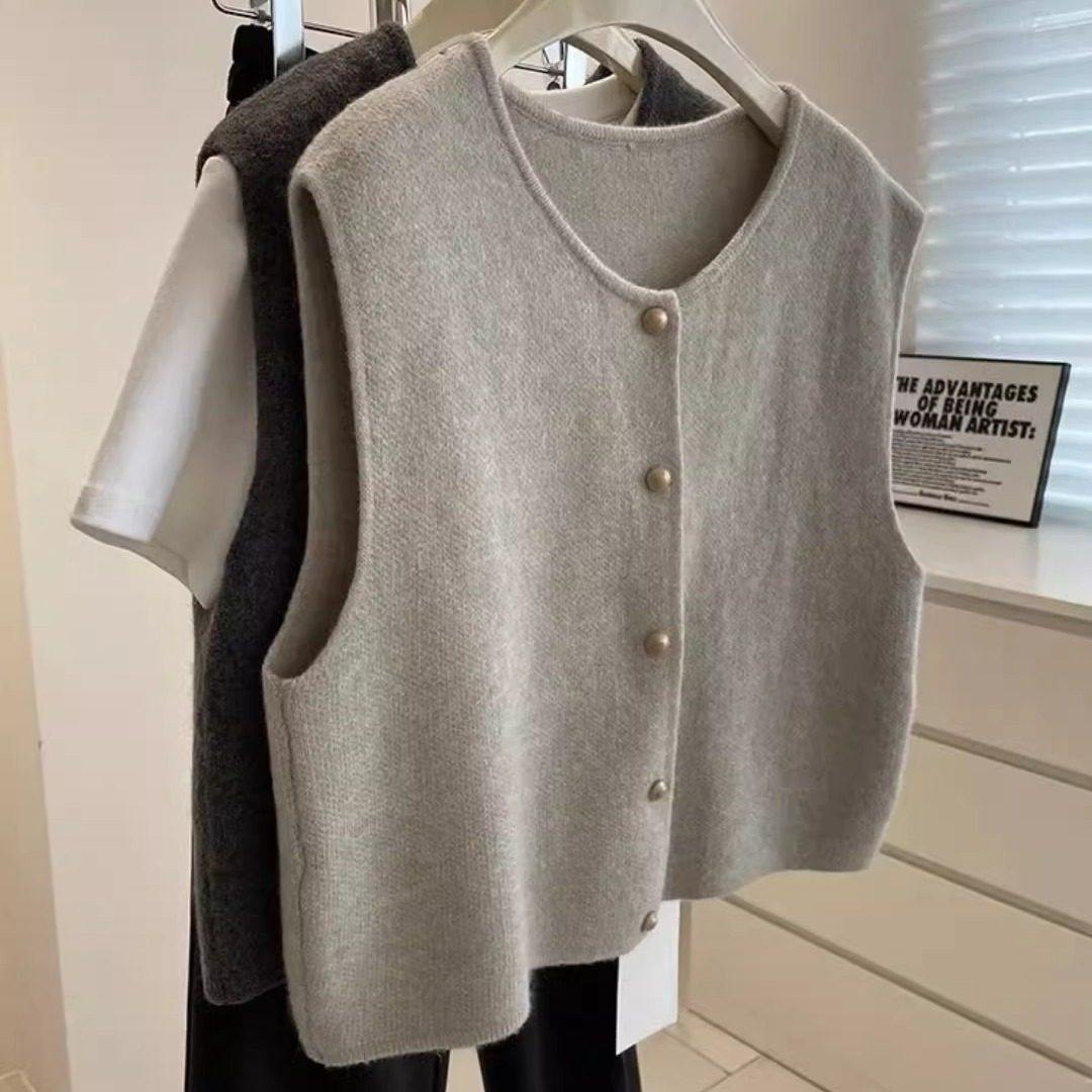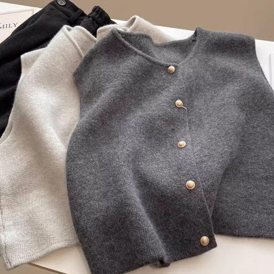 绝美巨好看的外搭毛衣马甲女秋冬别致复古叠穿针织无袖背心小上衣