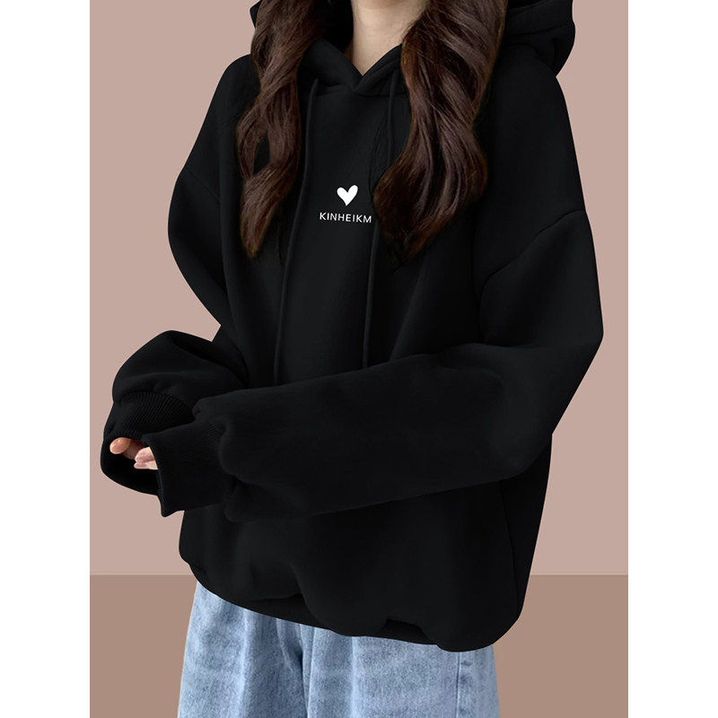 美式复古连帽卫衣女秋冬加绒加厚宽松显瘦慵懒风时尚简约通勤上衣