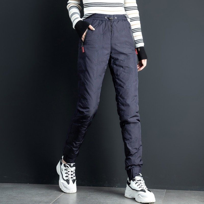 高级轻薄高腰羽绒裤女外穿时尚宽松冬季女士加厚保暖棉裤2024新款