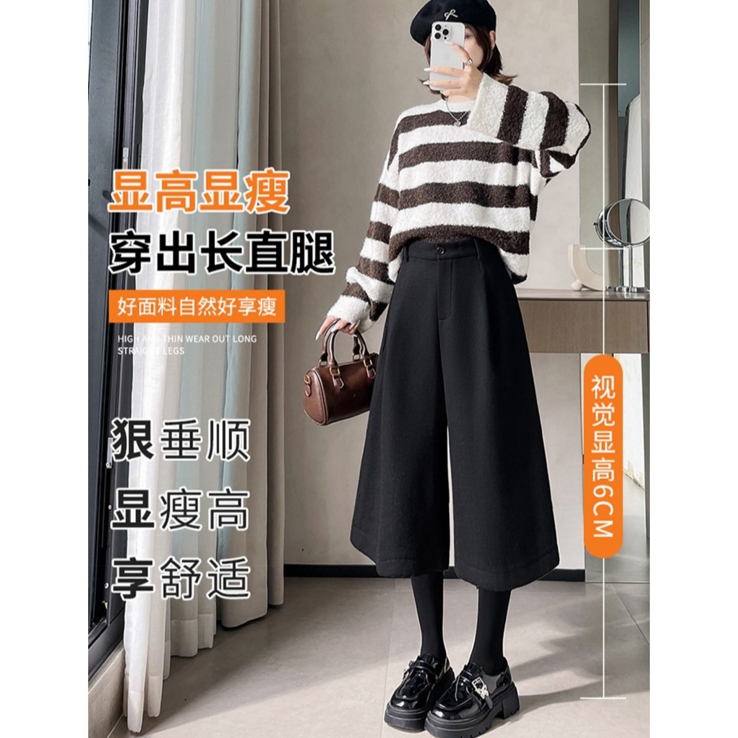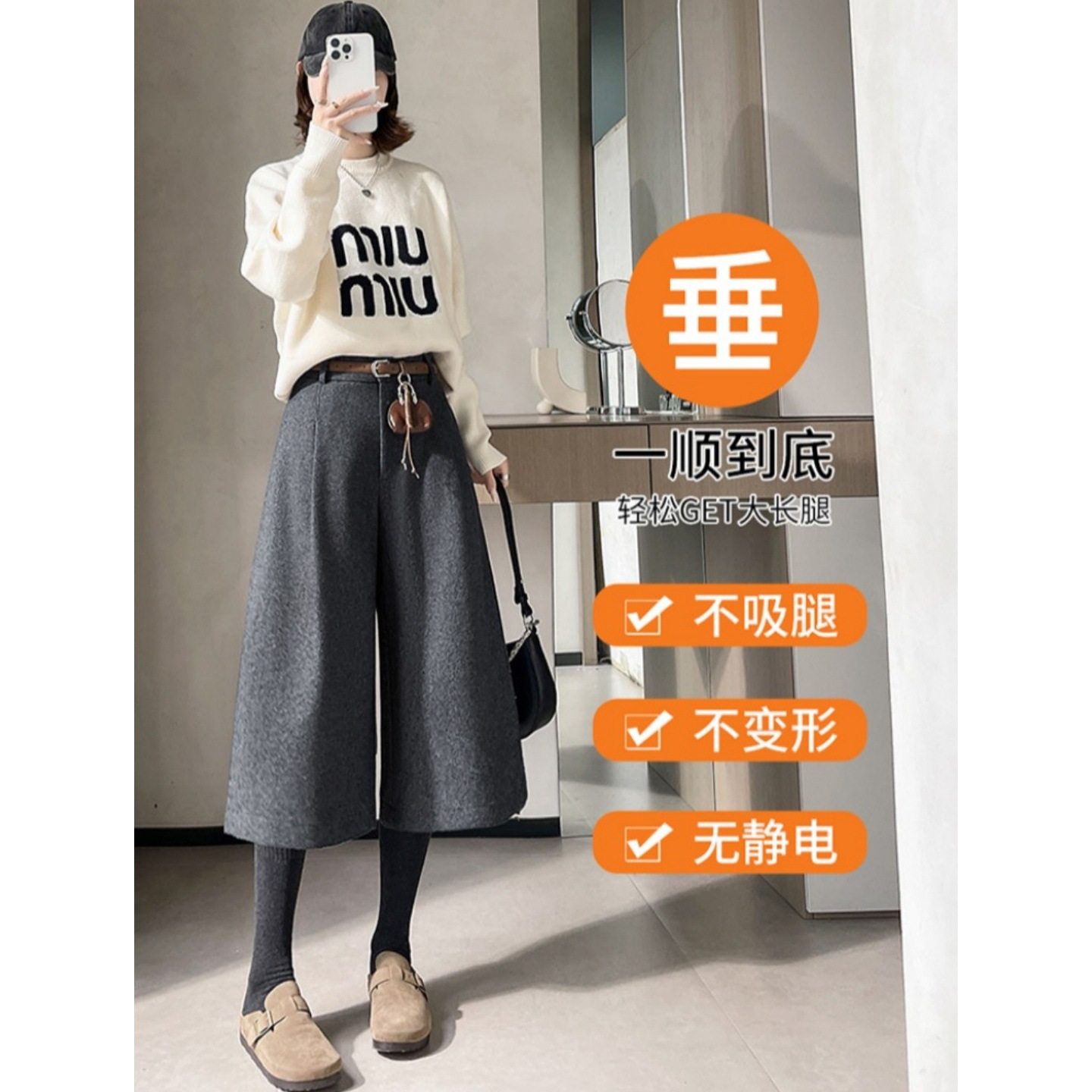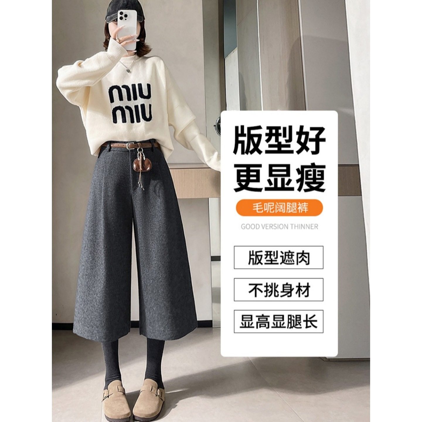 韩系灰色毛呢阔腿西装裤女秋冬巨好看的裤子配靴子加厚哈伦七分裤