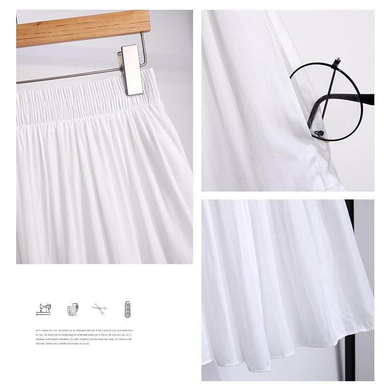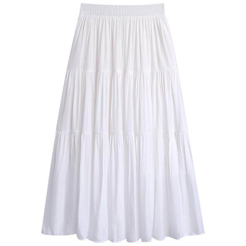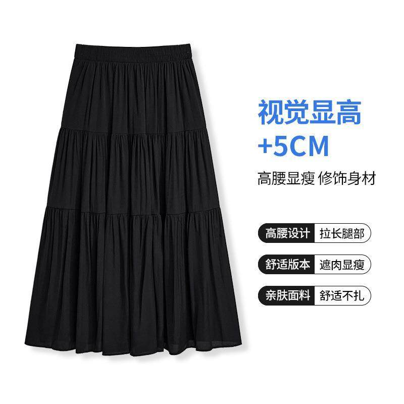 松紧腰A字休闲大摆半身裙女2024夏季新款韩版显瘦遮胯百褶中长裙