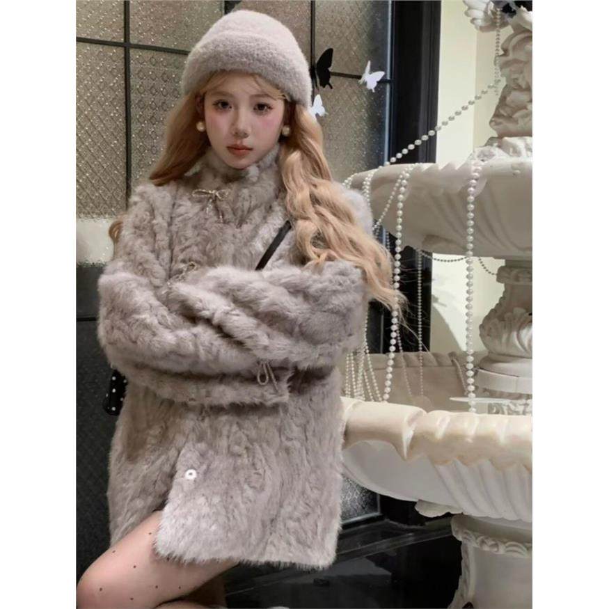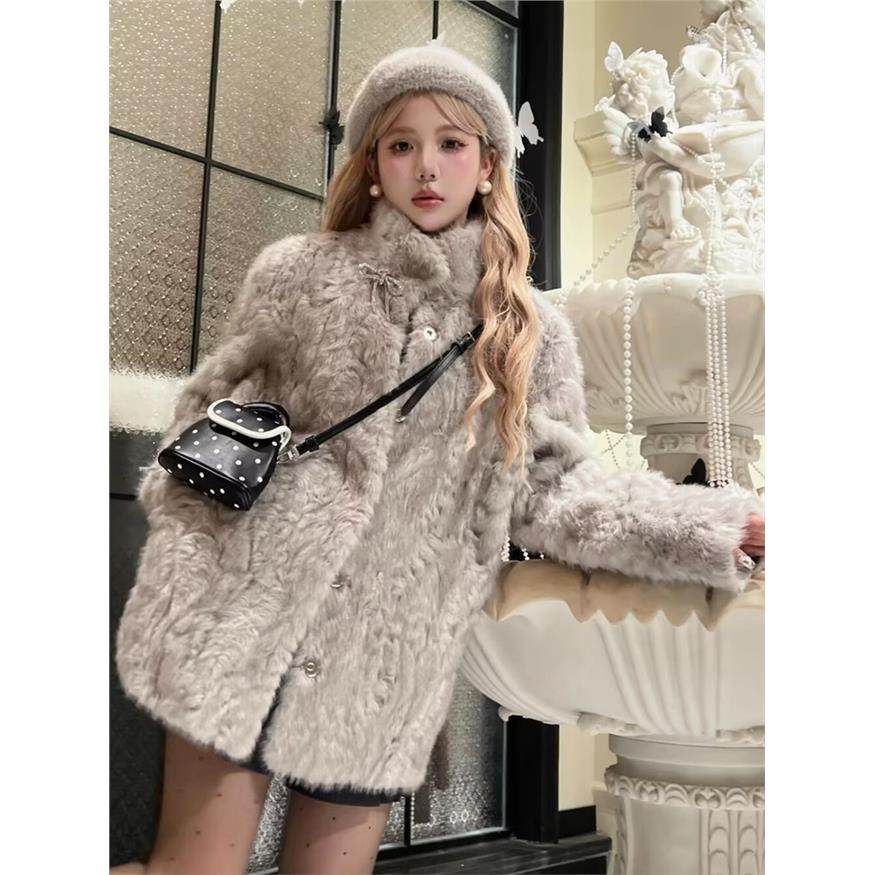 2025冬新款羊羔毛外套女立领染尖水貂绒皮毛一体环保皮草毛毛大衣