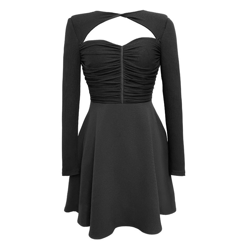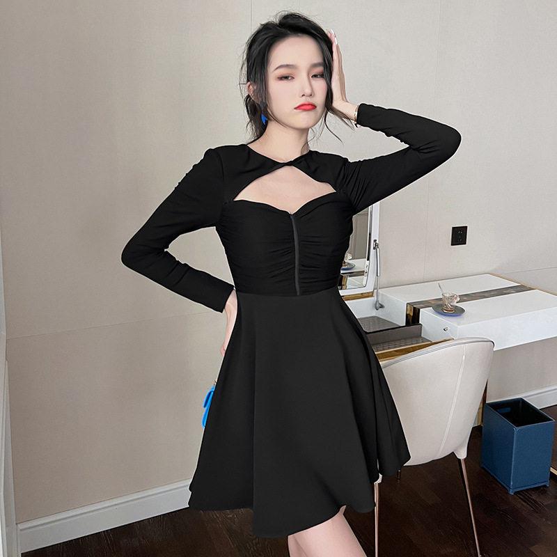 跨境女装2025秋装新款小个子气质收腰A小黑裙显瘦显高连衣裙9457