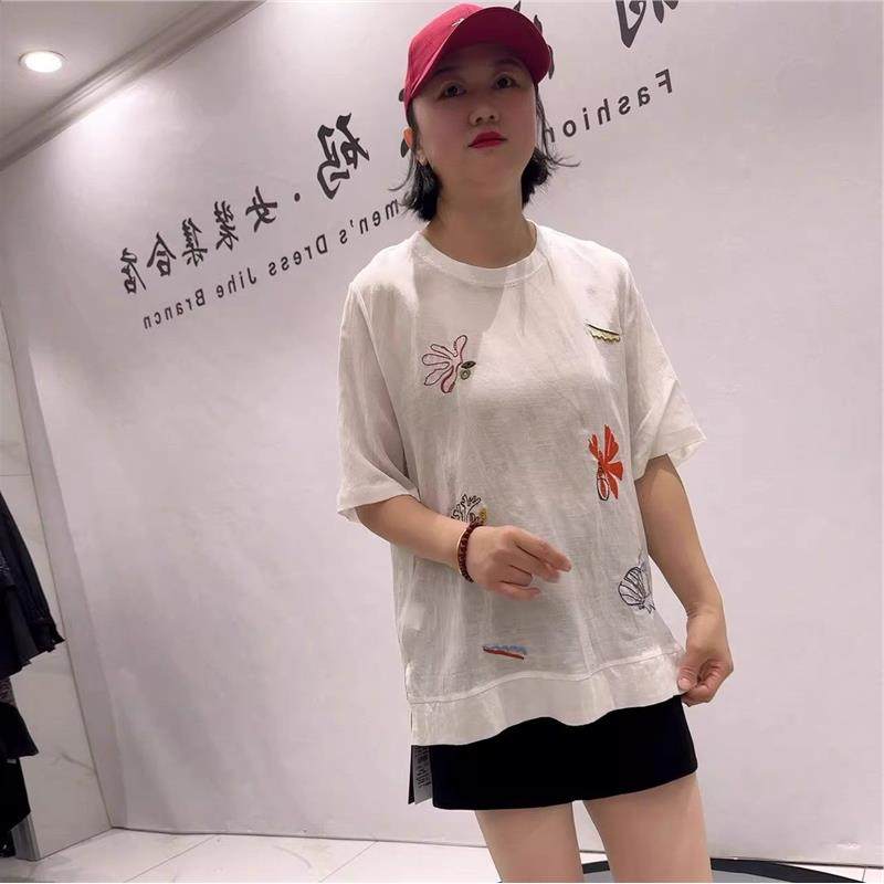 针丝缘时尚大码女装2026春装T恤1241春夏短袖衫减龄显瘦棉麻衫