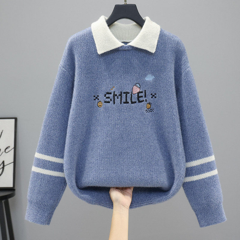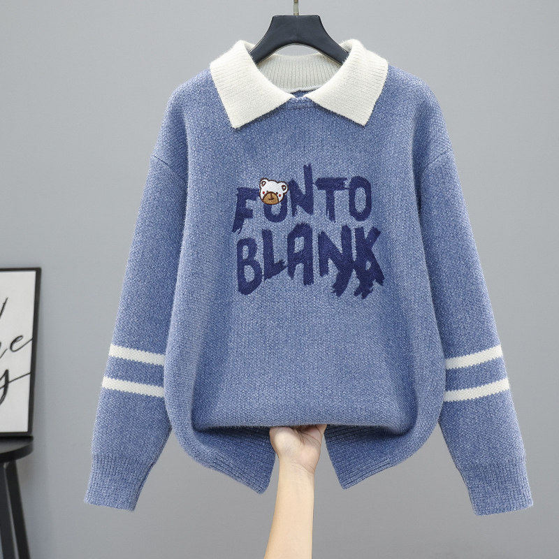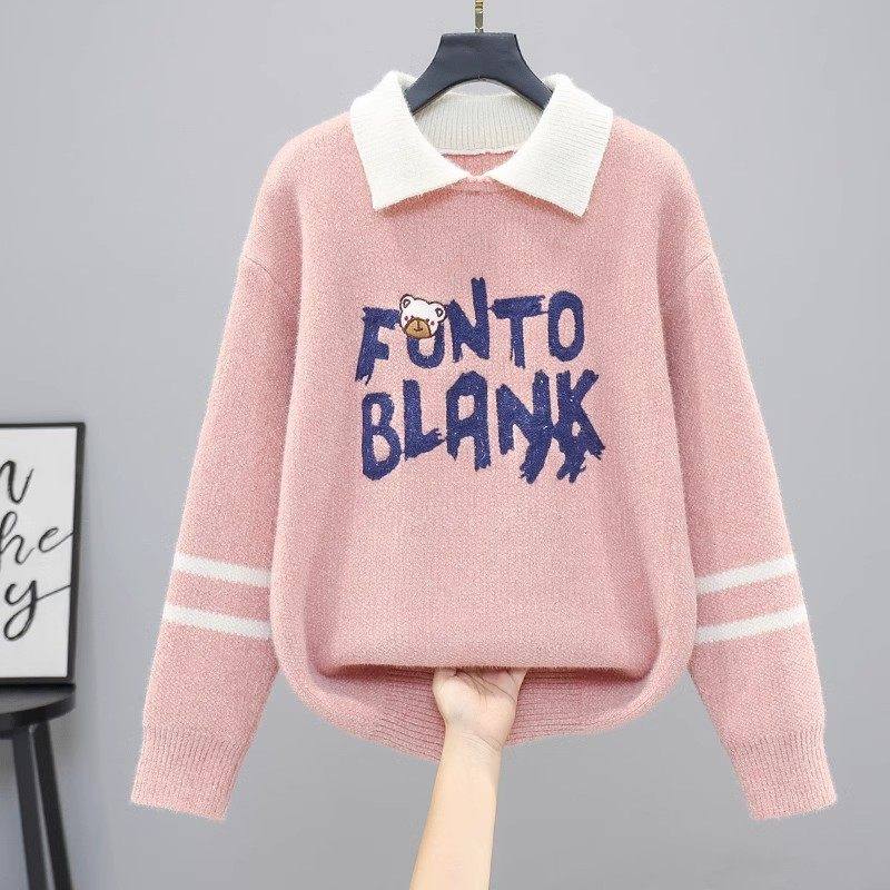 秋冬毛衣女款2025新款初中生高中生学生大童加绒加厚假两件打底衫