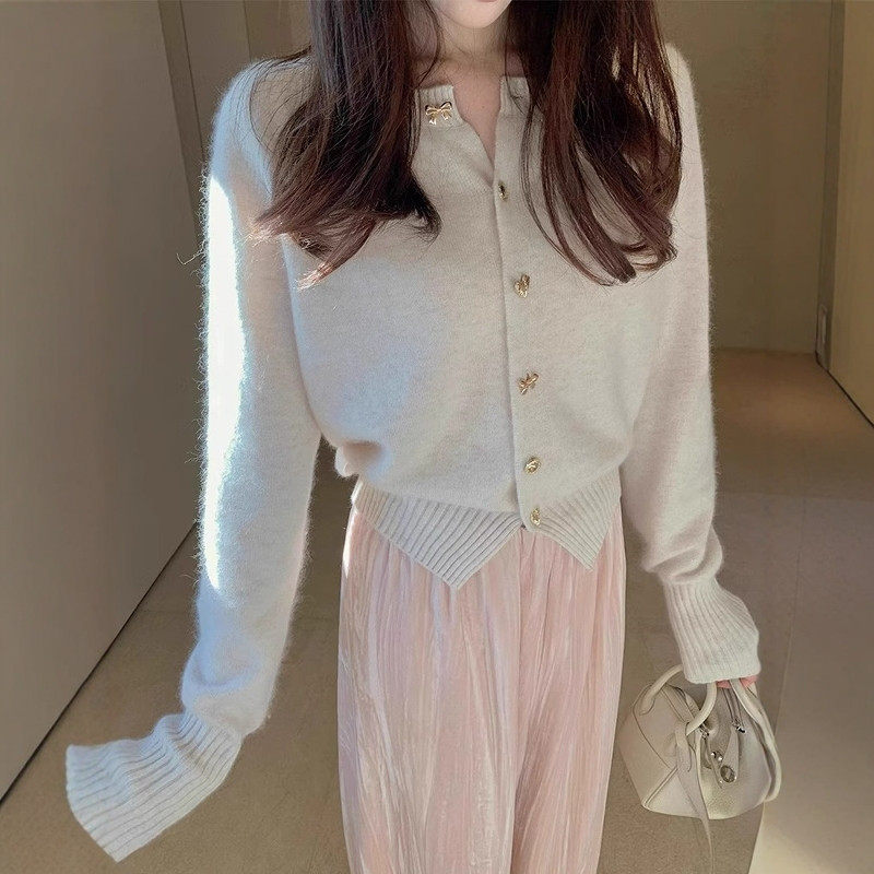 新年红色浣熊绒针织开 衫女秋冬新年高级感小香风短款毛衣外套上