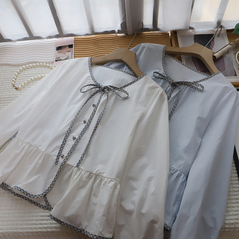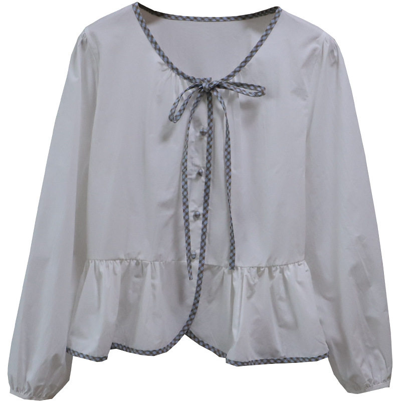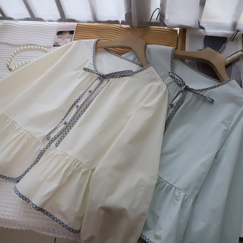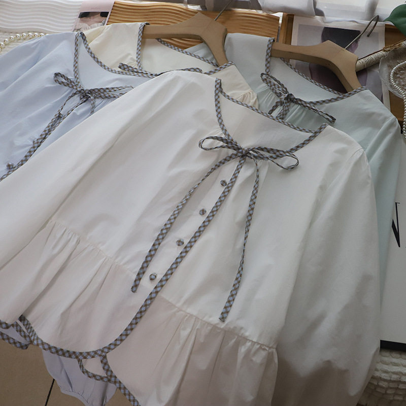 首页> 女装> [比正]2026早春新款韩系小清新减龄系带显瘦泡泡长袖衬衫女5911
