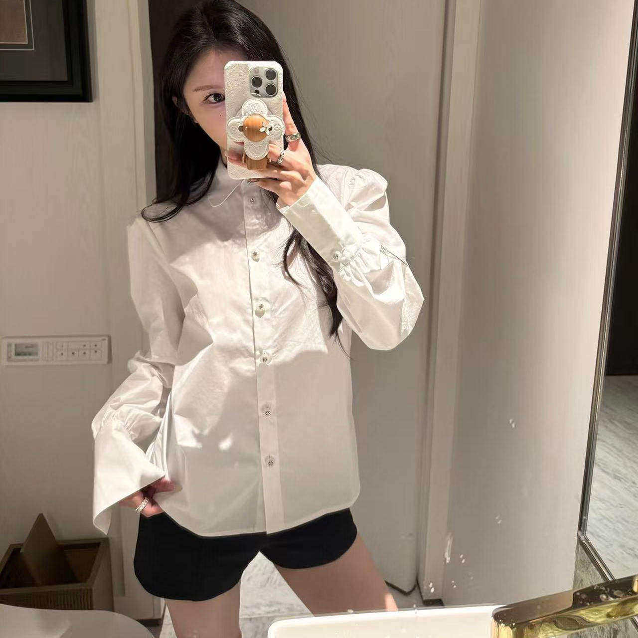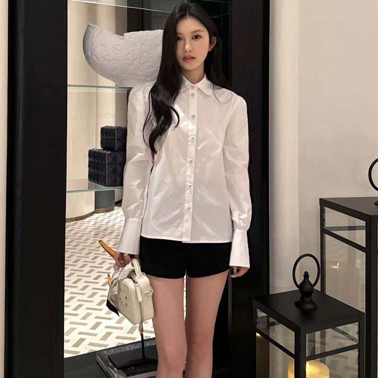 好漂亮泡泡袖白色娃娃领衬衫女2025年冬季新款短上衣名媛热销潮