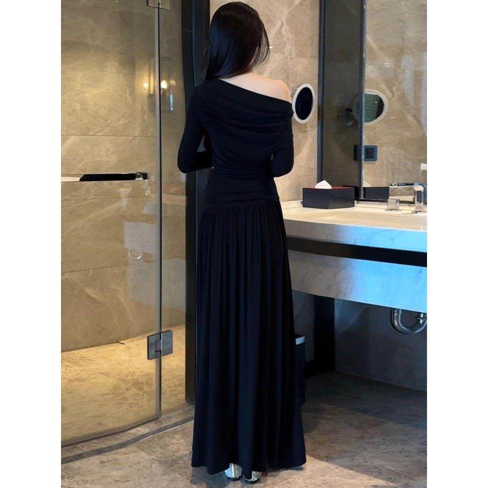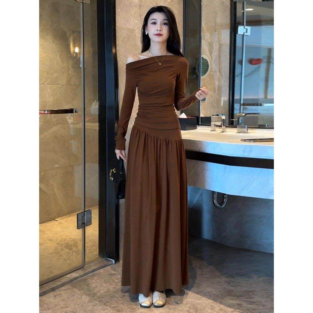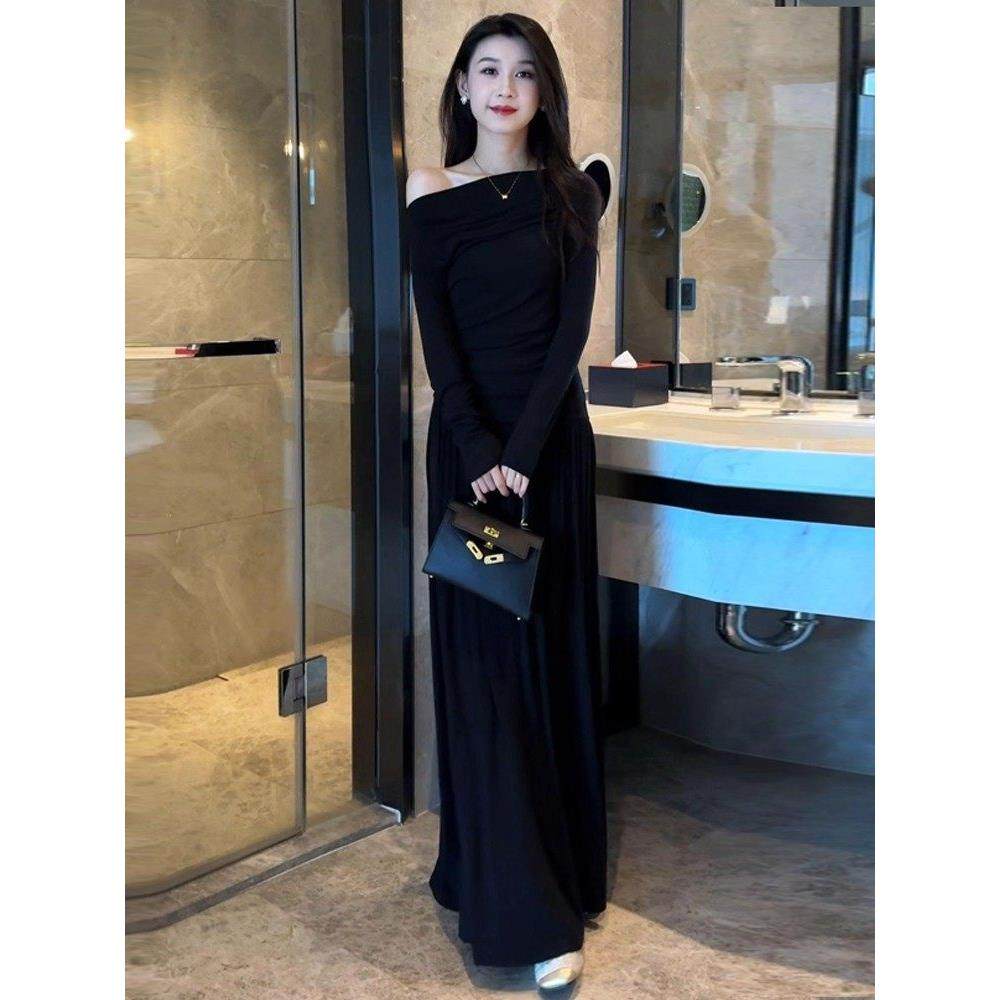 香港代购时尚套装裙女秋季新款显瘦露肩长袖T恤半身裙减龄两件套