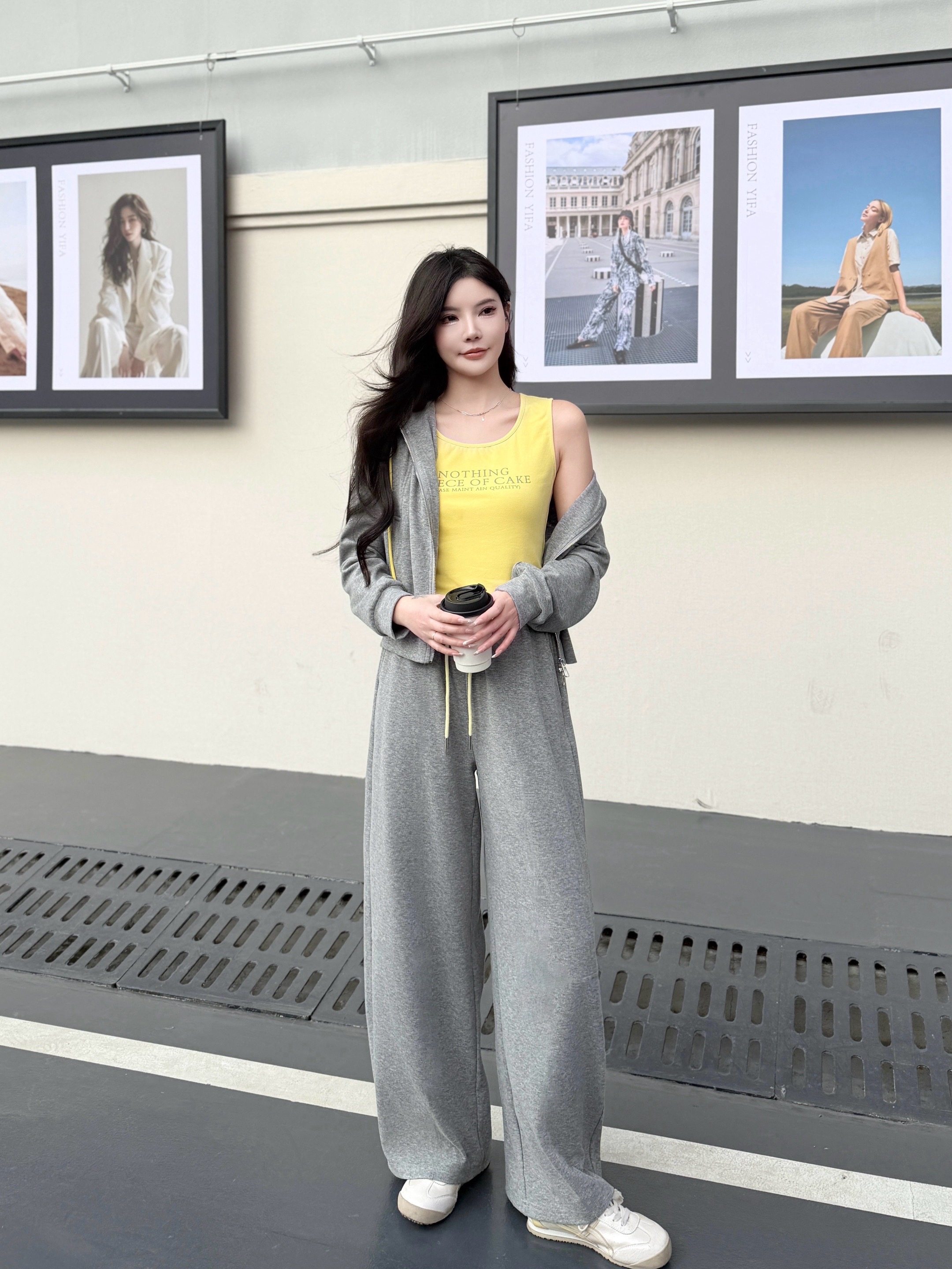 休闲连帽卫衣套装女春2026小个子减龄显瘦背心阔腿裤三件套s7601