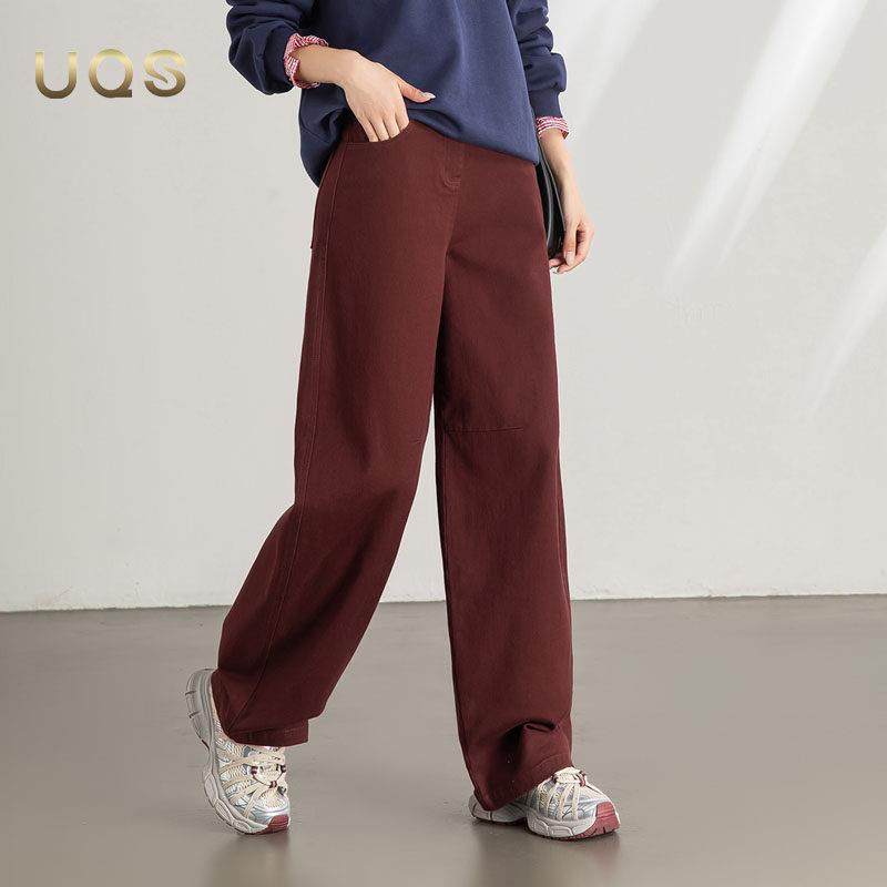 UQS大码休闲阔腿裤女秋季2025年新款百搭高腰宽松垂感显瘦弯刀裤